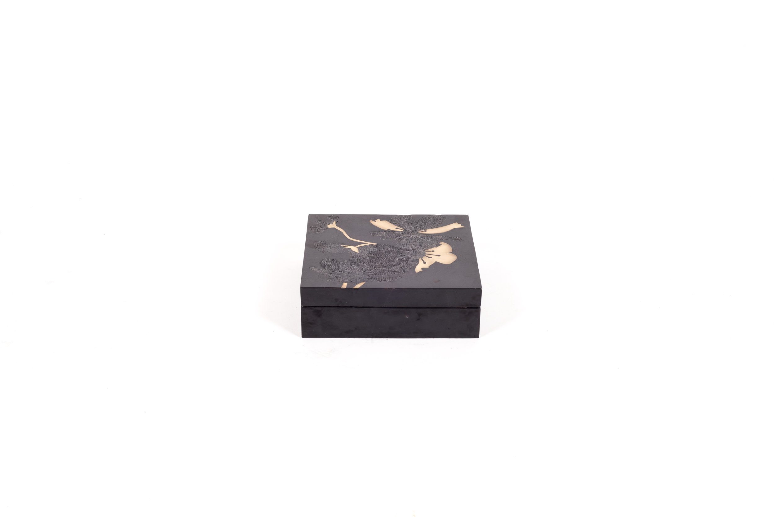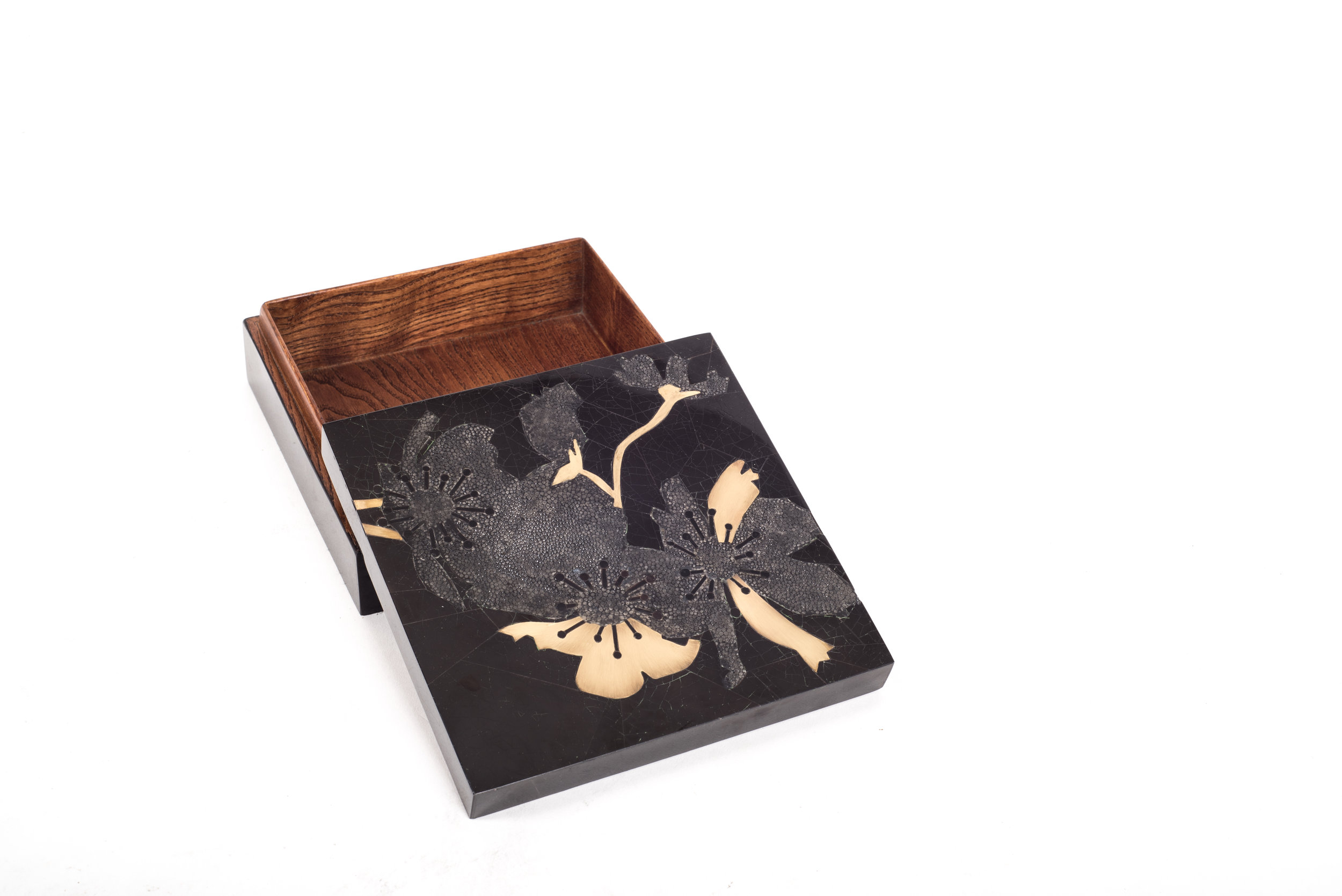 The Flower Dark Box in Medium showcases the signature whimsical details of KIFU PARIS. This piece includes intricate inlay work of shagreen, pen shell & bronze patina brass to create this stunning pattern. Available in other sizes and different finishes.