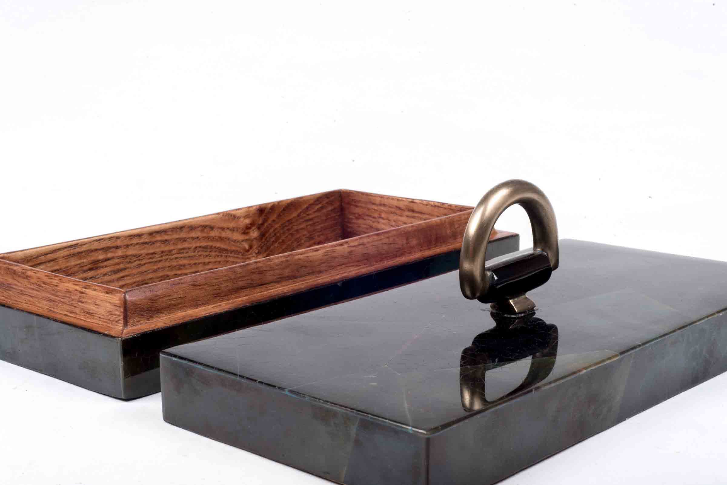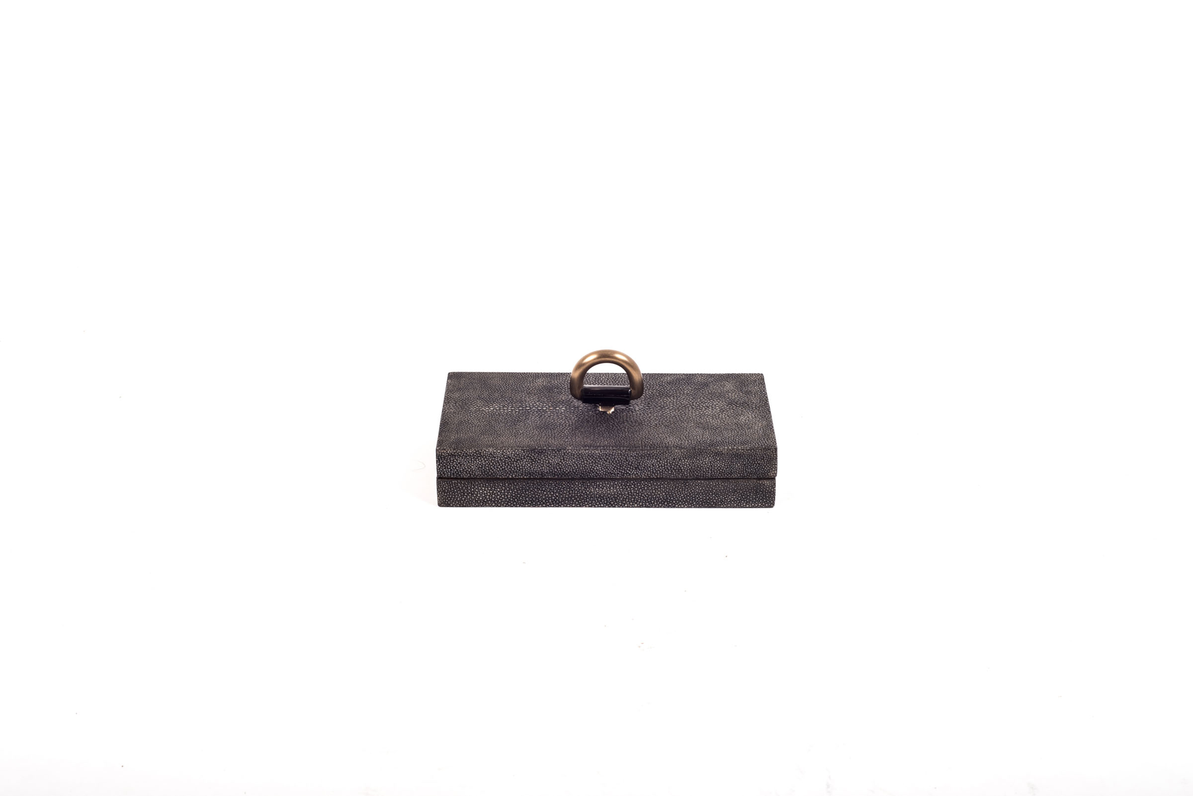 This Rectangle Box w/ a horseshoe knob is a classic piece for everyday usage. Available in other finishes.