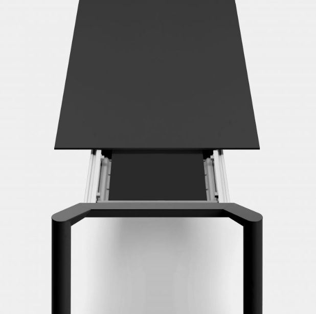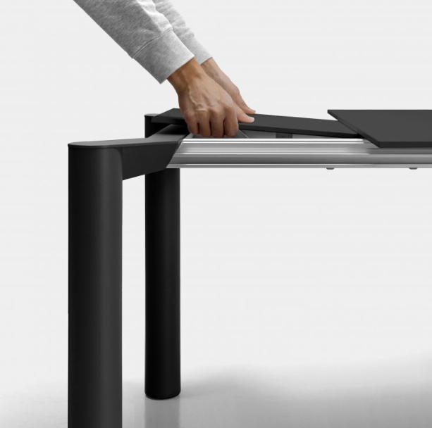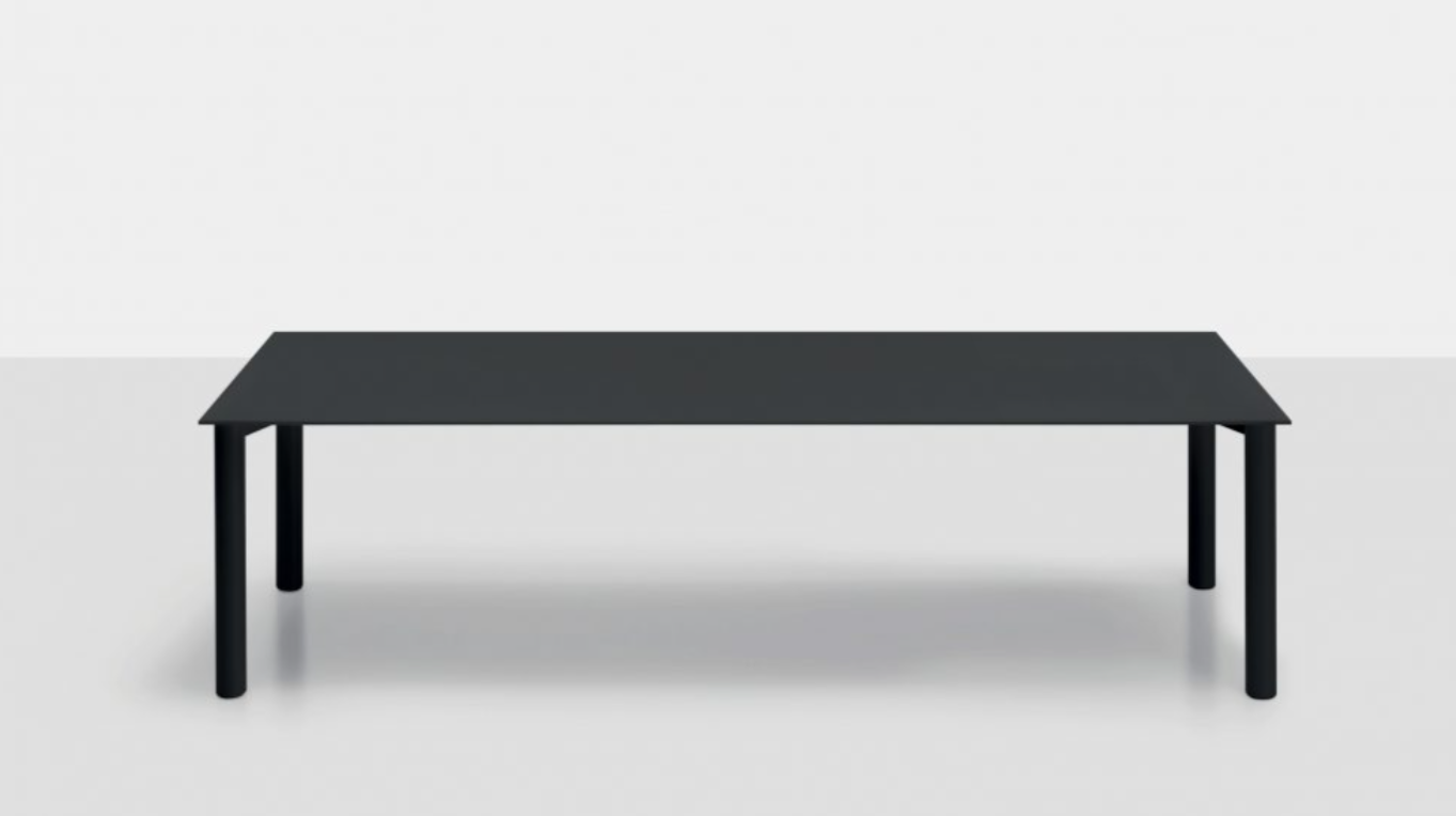 Bodoni is a collection of tables designed by Sam Hecht and Kim Colin and inspired, in the contrast between thick vertical lines and thin horizontal lines, by the Bodoni font family. The design is essential and almost archetypal with its composition of four sturdy legs that, like pillars, support a lightweight fixed or extendable top, in an interesting graphic contrast that becomes typographic. The assembly process is also extremely simple and designed to minimise any complexity. Available in many sizes and colour variations, Bodoni also features modern finishes: legs and joints are in aluminium, while the top is available in Fenix or marble.