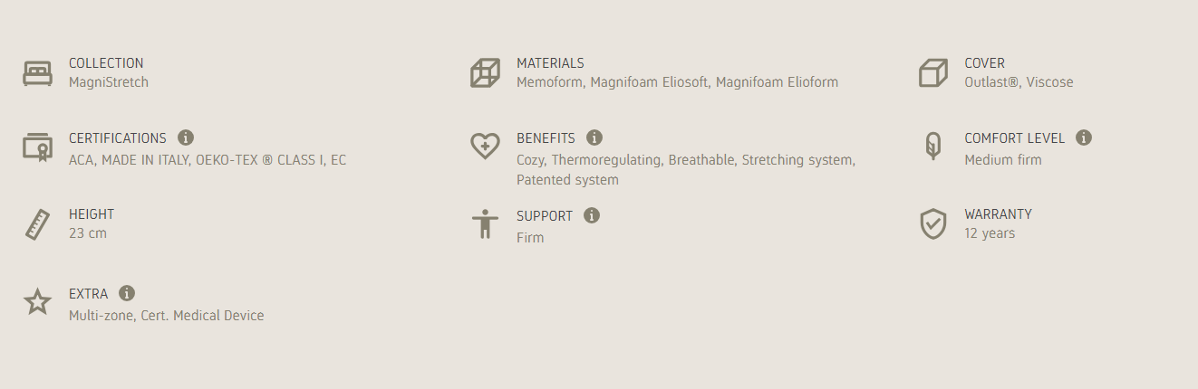 The technological and innovative mattress that ensures an exceptional benefit to the spine, thanks to the stretching and extension action exerted during your sleep, with a medium-firm level of comfort.