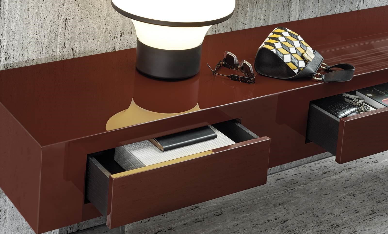 Some Solid coffee tables are equipped with drawers, featuring an open Moka oak and a push & pull opening system. Coffee tables that offer useful storage solutions, featuring drawers with a perfect aesthetic that almost makes them imperceptible.
