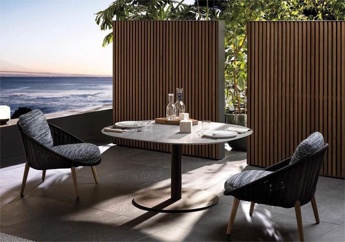 The Bellagio Outdoor family of tables expands with the addition of new dimensions in the dining and lounge/dining versions, available with stone or wood tops.
