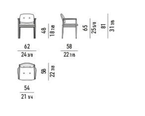 The wooden frame has a joint where the leg meets the armrest, both at the front and at the back: a structural joint that becomes decorative thanks to the clever use of the wooden material. In this project, the great expertise in woodworking that has always been characteristic of Nordic and Japanese craftsmanship meets the historical know-how of a Made in Italy company that has been an expert in exquisite upholstered furniture for decades.