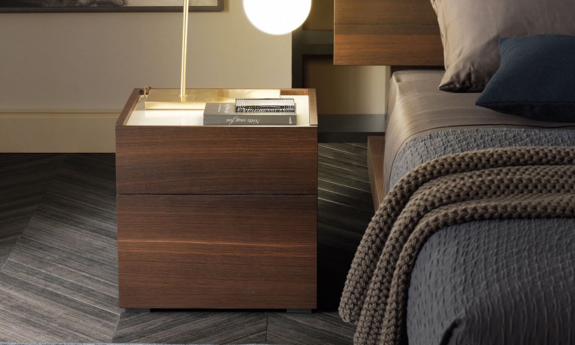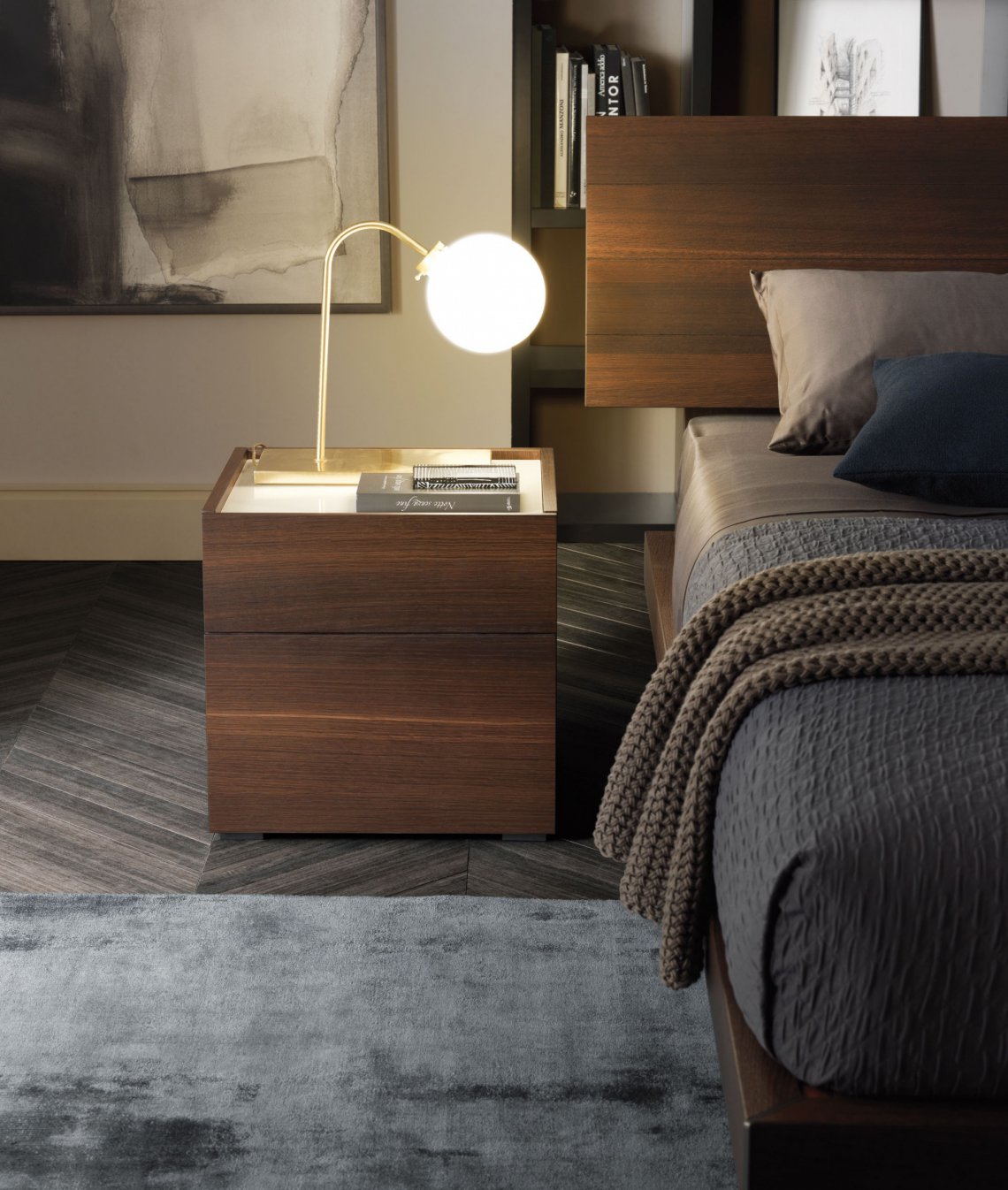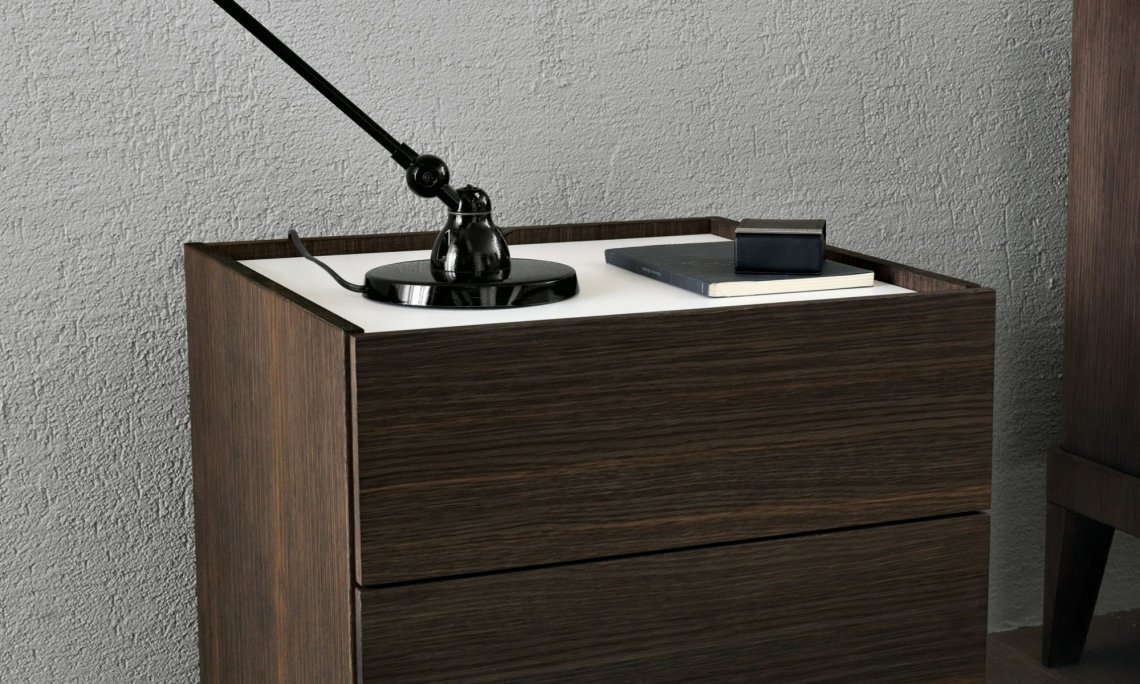 各式各樣的抽屜柜和床頭柜,巧妙與木材、漆器和玻璃結(jié)合。頂部弱化了繁瑣的結(jié)構(gòu)
