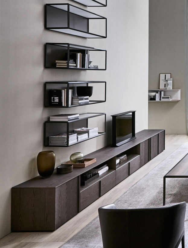 垂直于墻體,在墻上勾勒出清晰的輪廓。Grado°書架是一個(gè)室內(nèi)設(shè)計(jì)單元,特征是基礎(chǔ)的線條和搭配任意家具的能力。Grado°由Ron Gilad設(shè)計(jì),入圍了2014 金圓規(guī)獎設(shè)計(jì)獎項(xiàng)。這個(gè)系列的新型號是Grado°書架,一個(gè)帶有獨(dú)特45°切角的掛墻單元,安裝簡便,打造讓人印象深刻的掛墻書架。同時(shí)給喜歡傳統(tǒng)風(fēng)格的人們提供了北美胡桃木的材質(zhì)選擇。
