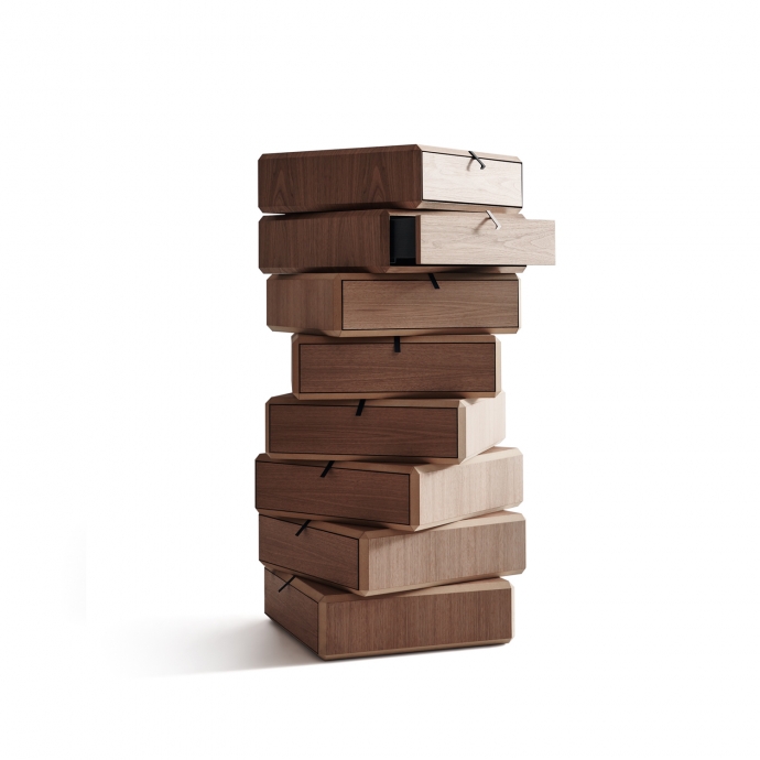 抽屜可以放置在中軸,亦可別出心裁,偏離家具的其他部分。原料選用胡桃木或者桉木,機械加工的微米級精度和結(jié)構(gòu)元件彎折膠黏中的匠心實現(xiàn)完美聯(lián)姻。帶有Molteni&C的DNA的典型折疊工藝,融入以色列建筑師精美而詩意的設(shè)計。