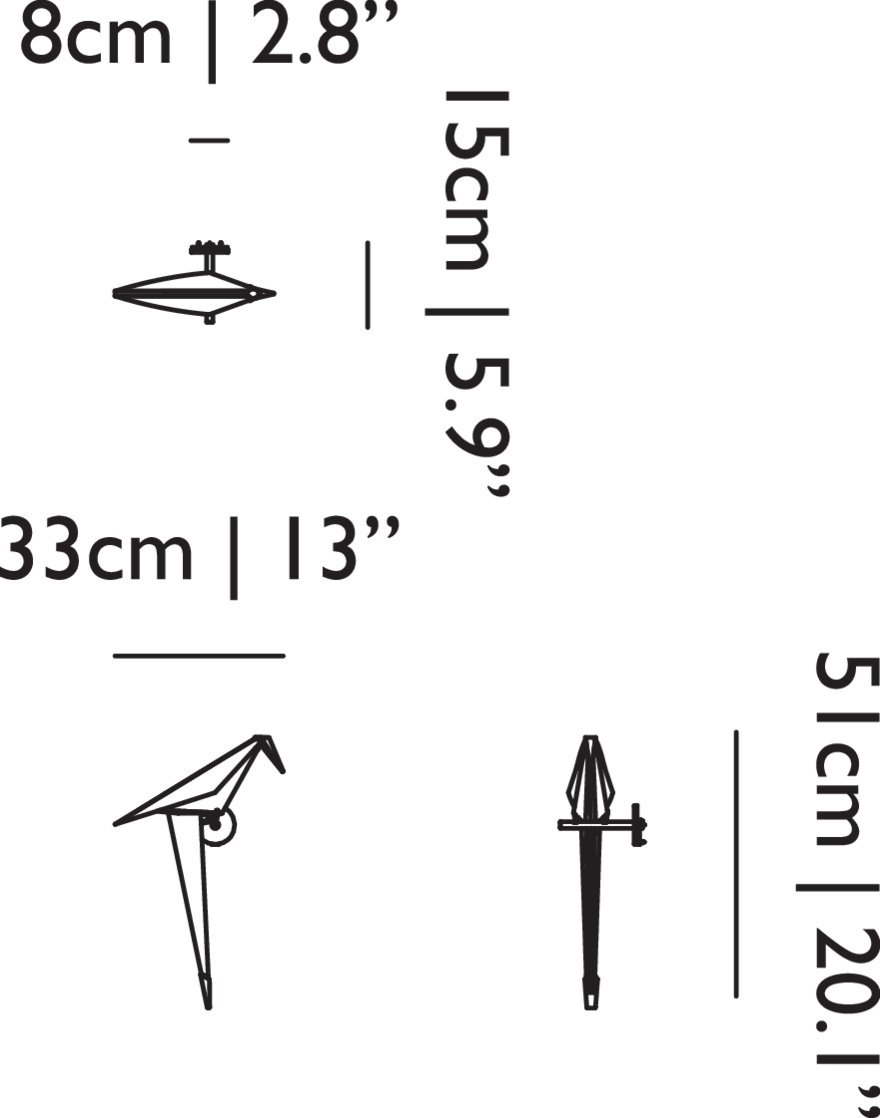 Made of folded paper and brass, the Perch evokes a feeling of freedom. Let the graceful bird swing and glow with joy. Just beware that it might just spread its wings and fly away…