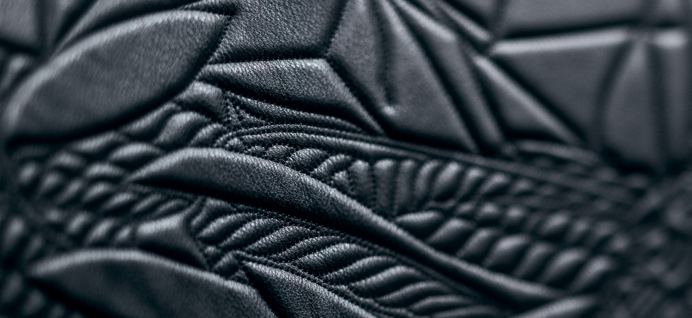 Espanso schiumato a freddo ignifugo e fibra poliestere con struttura interna in resina e acciaio. Piedi in tubo di acciaio verniciato a polveri e rivestiti in pelle con sottopiedi in polipropilene nero. Va utilizzata una pelle molto morbida, la Elmo Soft o Soft Ciré con ricami sempre in tono al colore della pelle disponibile in molti colori. La collezione Doodle non è sfoderatile.