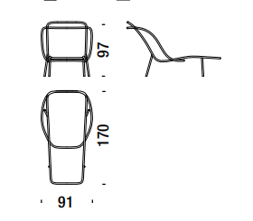 Struttura in acciaio verniciato e fili colorati in polietilene intrecciati a mano. Sottopiedi in PVC.