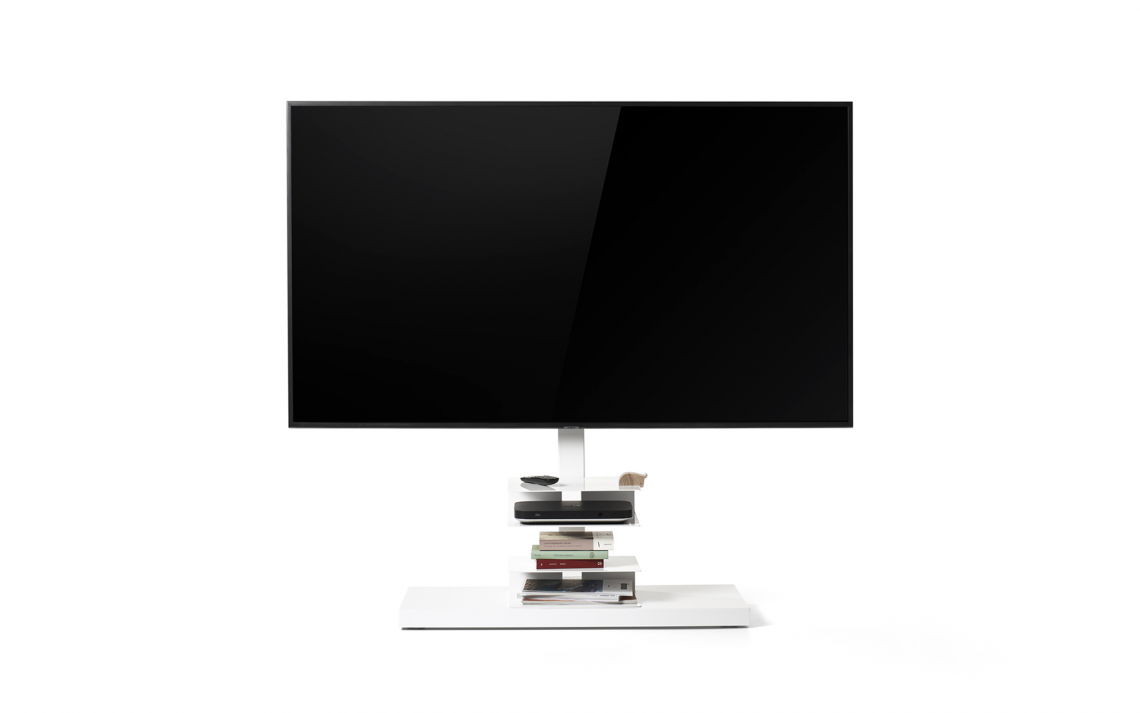 Essenziale, leggero, funzionale. Ptolomeo TV Smart è la naturale evoluzione di Ptolomeo TV Light, supporto multimediale della sempre più numerosa famiglia Ptolomeo. Le necessità cambiano, i consumi evolvono, Ptolomeo TV Smart li segue adattandosi alle sempre crescenti dimensioni delle televisioni di ultima generazione. La struttura rimane la stessa, una colonna raccoglicavi con due serie di mensole in acciaio - studiate per contenere le periferiche più conosciute - e supporto con adattatore TV nella parte superiore. Ciò che cambia sono i volumi, base e colonna sono aumentate per garantire la stabilità anche in presenza di pesi e ingombri più elevati.