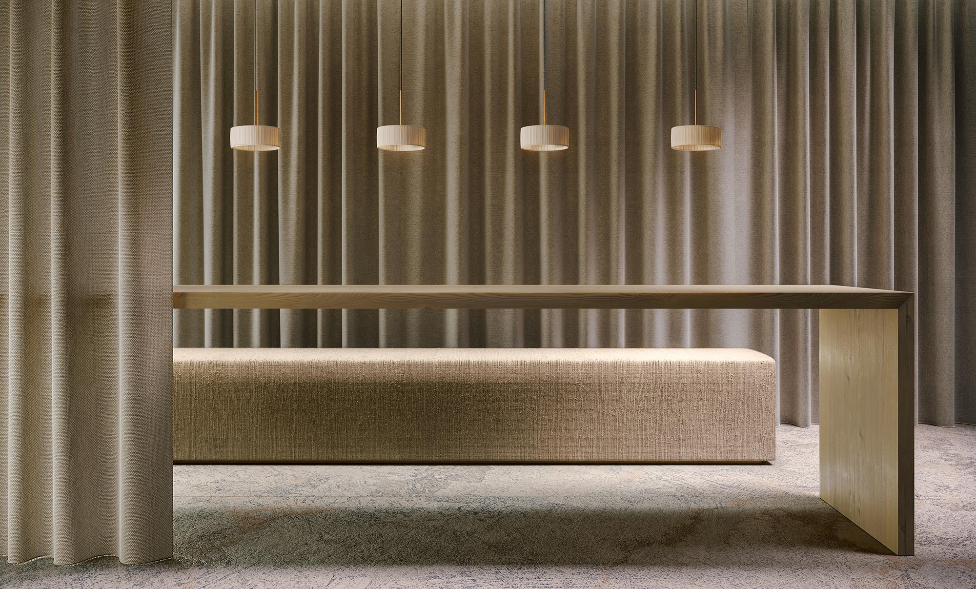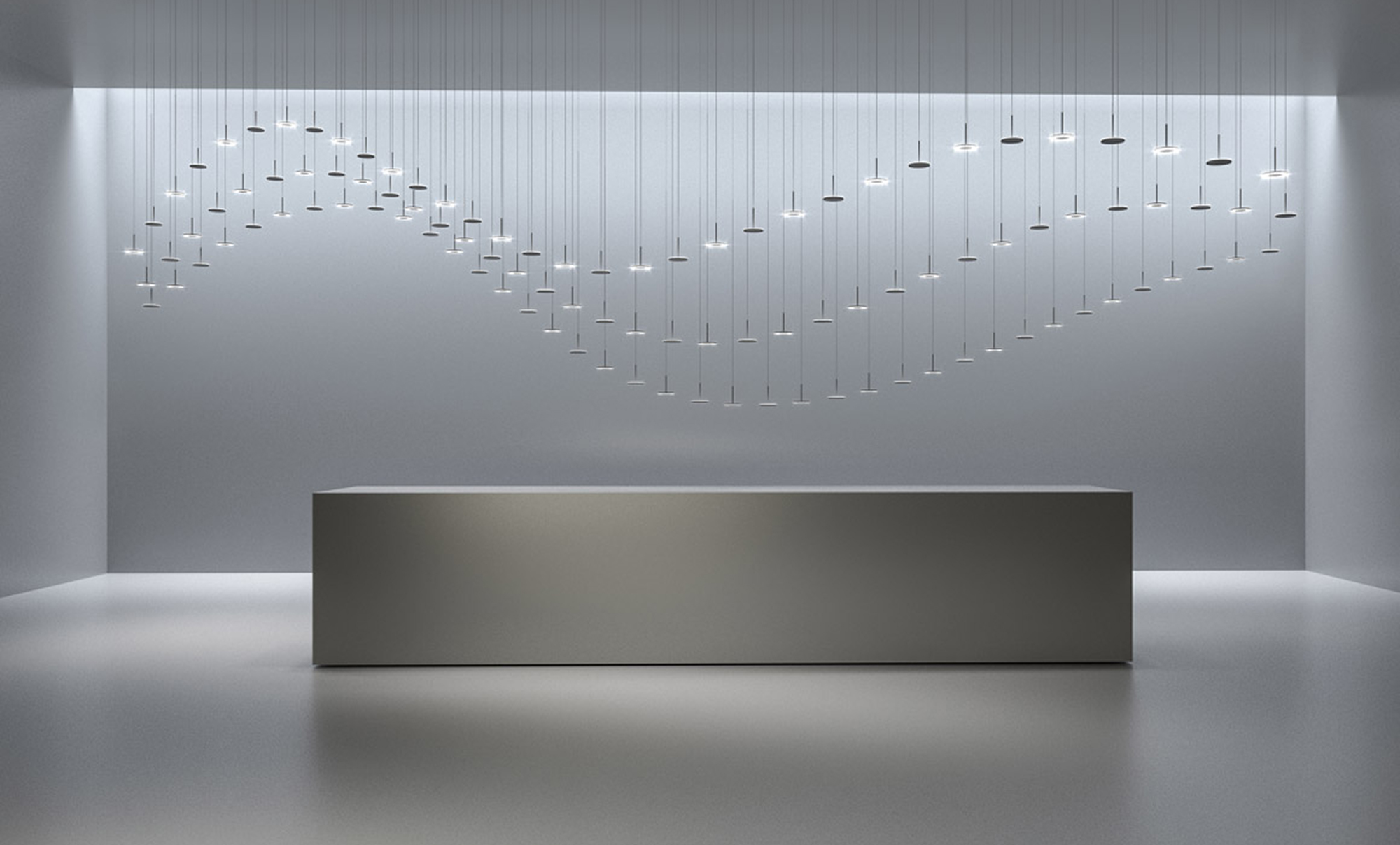 Lampada da sospensione, tavolo e parete (disponibile anche a incasso) con testa in pressofusione di alluminio. Diffusore in materiale acrilico con perimetro luminoso. Braccio conico decentrato, testa orientabile e comando Step DIM a 5 regolazioni di intensità luminosa caratterizzano le versioni da tavolo e parete, quest’ultima con snodo anche alla base, per una maggiore flessibilità nel posizionamento. La versione a sospensione, testa fissa e con tige centrale è disponibile in versione a emissione diretta e indiretta. Disponibile paralume in tessuto color avorio “Bella vestita” disegnato da Matteo Thun, da ordinare separatamente. Bianco, nero, titanio, bronzo e ottone satinato le finiture disponibili.