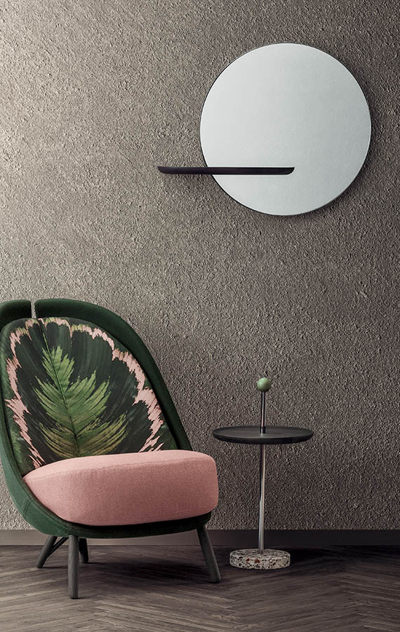 A collection of functional and elegant accessories, Contralto wears its pared-back, linear look as a distinguishing feature. The series comprises mirror, side tables and valet stands. The latter all share a common specific detail giving them their distinctive character: a terrazzo plinth serving as the base supporting a sleek, slender metal stem that has a series of elements branching off it at the ideal height for practical use. The resulting forms are fluctuating sculptural volumes, often portable, invariably full of life, designed to simplify those little everyday actions. All shelves and set-down spaces are made from turned and smoothed ash to provide a lovely tactile quality and prevent damage of any kind to whatever item of clothing or other object is placed on them, no matter how delicate. These pieces can be tailored to individual requirements, choosing any of the Pianca wood options.