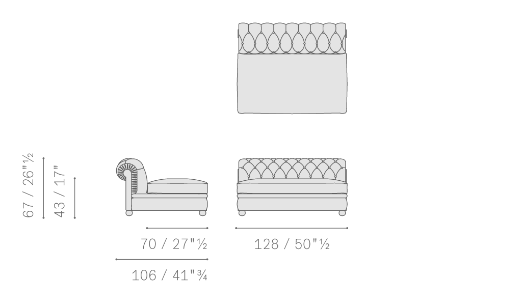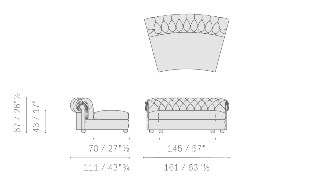 Chester Line沙發(fā)的支承結(jié)構(gòu)采用陳年櫸木實木。坐墊、靠背和扶手處的彈簧結(jié)構(gòu)使用手編雙錐形彈簧,架在黃麻帶上??勘澈头鍪职鼔|中填充手工塑形植物纖維。鵝絨坐墊中添加聚氨酯泡沫穩(wěn)定內(nèi)芯。Pelle Frau?皮面與Poltrona Frau布藝構(gòu)成不同搭配組合。經(jīng)典圓形版本的支腳使用深色胡桃木色或黑色漆光櫸木;高12厘米,使用深色胡桃木色或黑色漆光櫸木;櫸木表面覆蓋軟皮,與沙發(fā)覆面搭配,或使用鍍色效果拉絲鋁板。