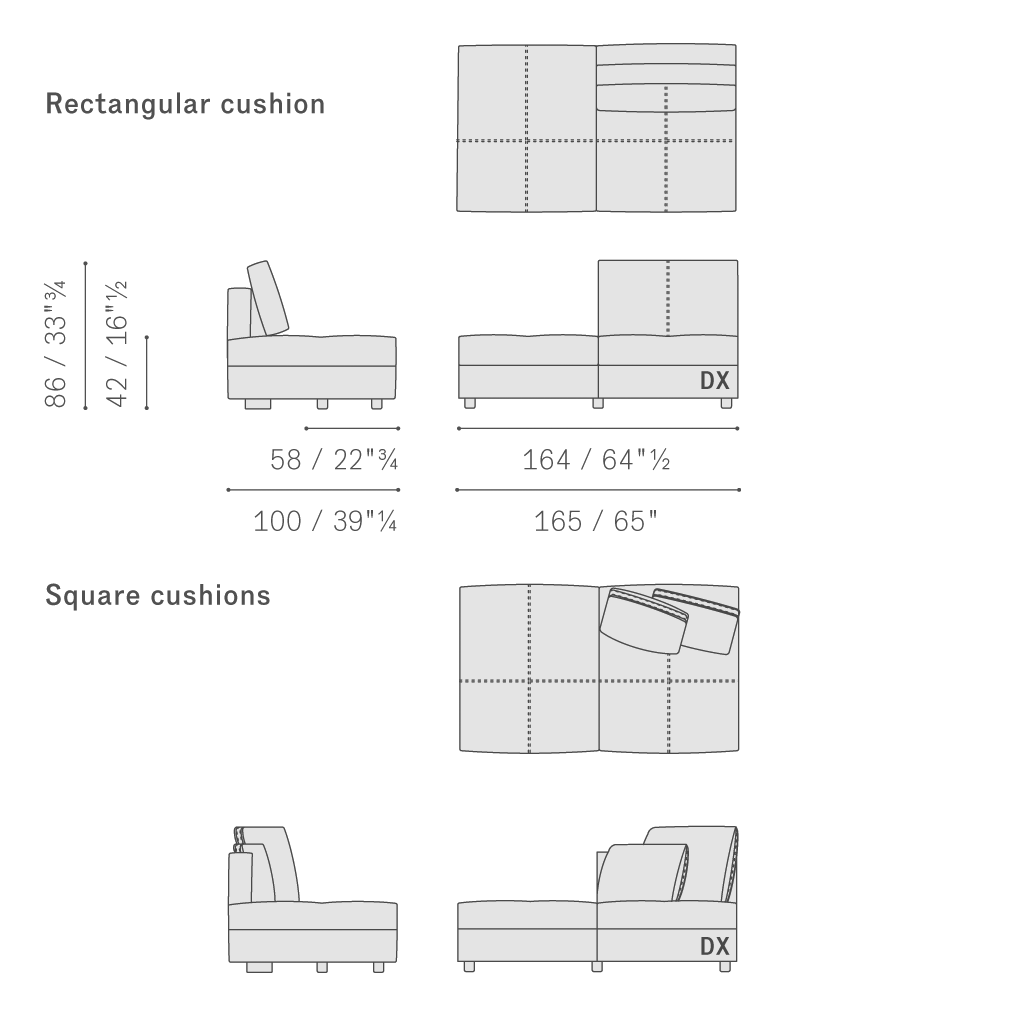 Massimosistema沙發(fā)分為單人座、雙人座和三人座,可以選擇是否搭配扶手,此外還有躺椅、沙發(fā)島和圓沙發(fā)凳,完全可以獨(dú)立使用,或互相搭配。沙發(fā)結(jié)構(gòu)采用櫸木和陳年楊木,側(cè)面使用樺木膠合板和中密度纖維板墊層。彈簧結(jié)構(gòu)使用松緊帶。坐墊填充鵝絨和聚酯絮絨,添加聚氨酯泡沫嵌塊。扶手分為三種款式:高、中、低,無論是閉合式配置、組合模塊或非對(duì)稱配置,互相之間均可搭配。可以整體覆蓋Pelle Frau?軟皮(包括雙色),或選配多種材質(zhì)。