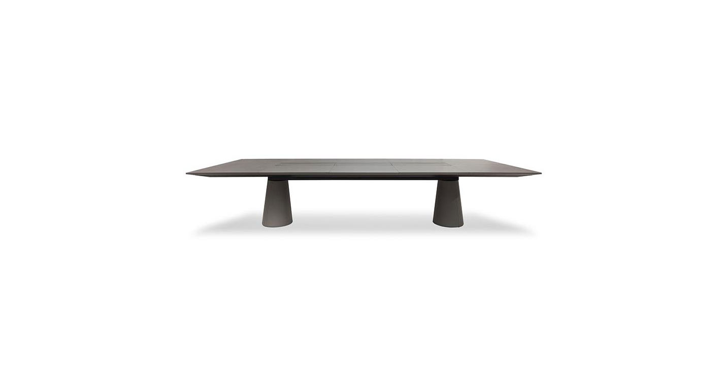 Mesa Due Meeting Table桌面由多塊板構(gòu)成,因此可以擴展為不同長度。根據(jù)尺寸不同,也可以增添支撐結(jié)構(gòu)。所有桌子都配有走線系統(tǒng),并在需要的情況下設(shè)有中部開合式面板,以方便連接電器部件。雙層中密度木質(zhì)纖維桌板完全由Pelle Frau?軟皮包覆。桌面下部采用黑色漆面鐵制支撐框架。支撐立柱為鋼制,利用配重系統(tǒng)加以穩(wěn)定,并采用Pelle Frau?皮革包覆,飾以同色調(diào)縫線;或為Cuoio Saddle Extra革,飾以對比色縫線。