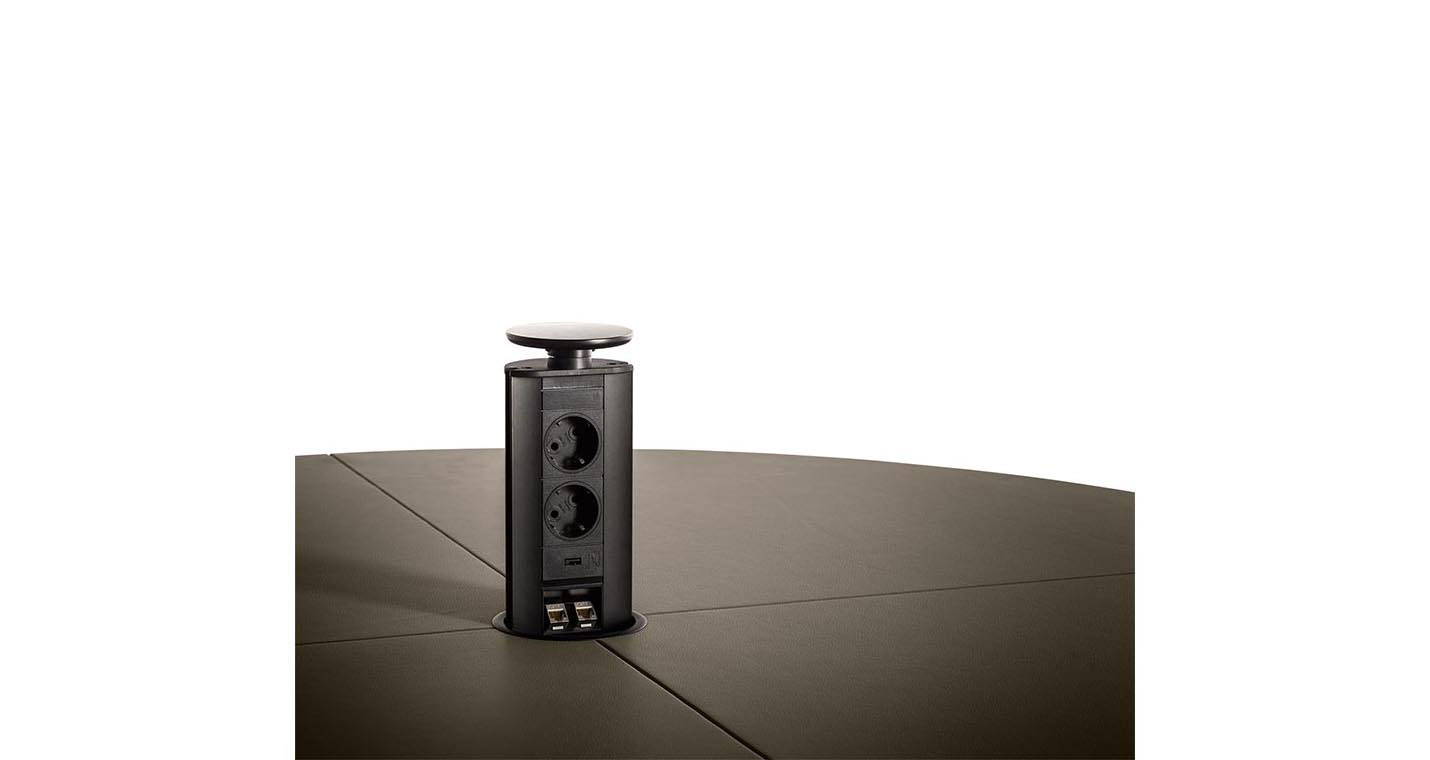 Mesa Due系列也包括Mesa Due Round Meeting Table桌。直徑分別為120和150,完美適合當(dāng)作小型會議桌。鋼制底座,覆蓋Pelle Frau?軟皮或Cuoio Saddle Extra真皮,該版本也可配備電力伸縮柱。梣木桌面也可使用摩卡色或雞翅木色。支承部分也可使用Pelle Frau?軟皮覆面。