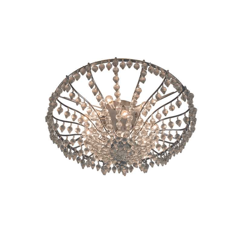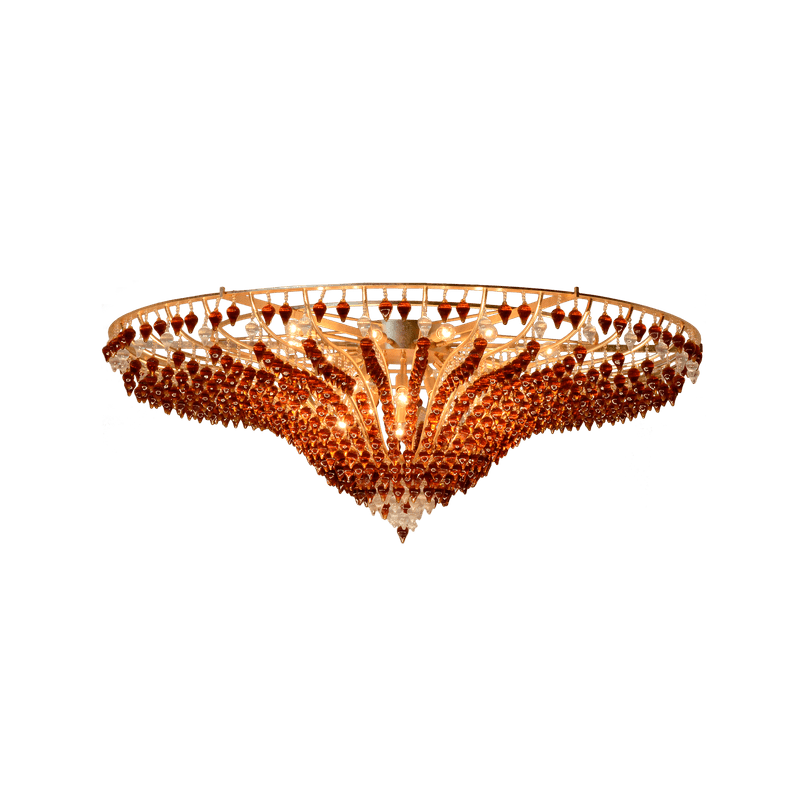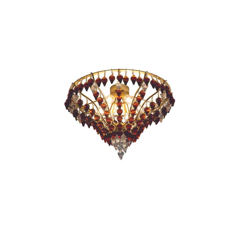 Looking upwards it seems like there are strawberry fields on the ceiling! Ophelia, which has been the company’s symbol for years, has evolved into different models of itself. In the last model the strawberries have been substituted by prisms in clear crystal, while lampshades created with crystal lozenges have made their way in favor of the traditional fabric ones.