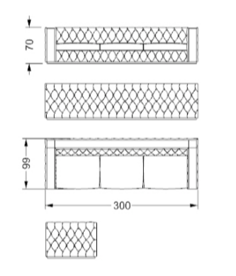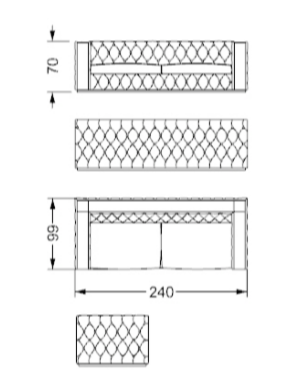 Upholstery in fabric, velvet or leather. Stud on backrest and arms, inside and outside.