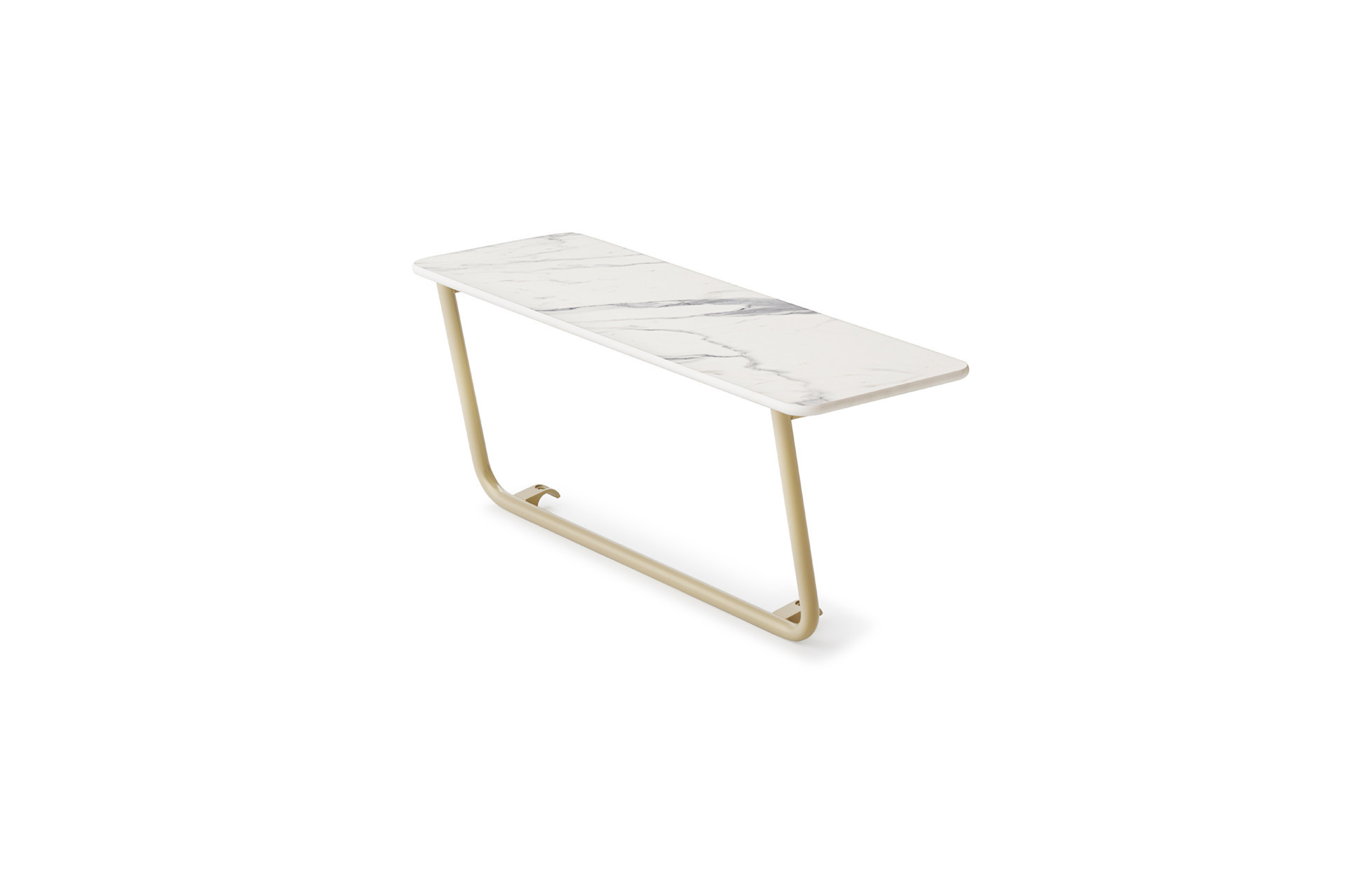 Mensola in acciaio inox Aisi 304 verniciato a polveri. Componente modulare della collezione Arman, un concept di design che consente di combinare i diversi elementi in modo armonioso e personale. L'intera gamma è progettata sia per l'arredamento residenziale che per quello contract, sia per gli spazi outdoor che indoor.