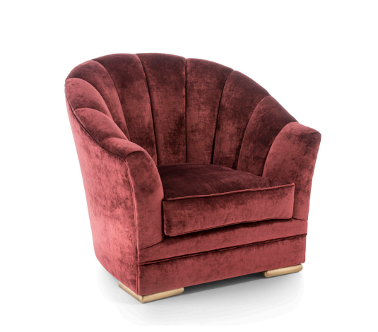 Armchair, frame made of solid timber and plywood. Variable densities polyurethane foam padding. Antique bronze or antique silver finish feet. Feather backrest recommended (refer to pillow section).