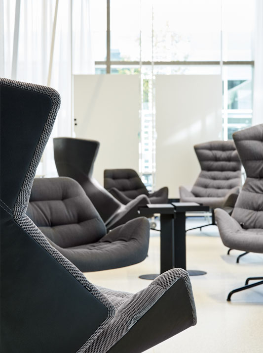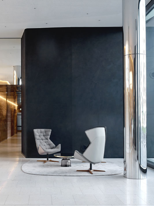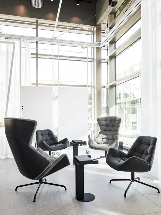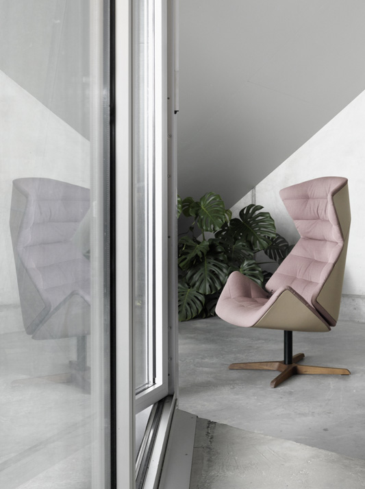With the range 808, Munich based design studio Formstelle has created a lounge chair that combines maximum comfort with numerous possibilities for individualisation. The lounge chair 808 plays with the contrast between a protective shell and an inviting openness, creating a place of retreat and calm. Its distinctive appearance is created through a contemporary reinterpretation of the classic wing chair – the shape suggests an elegant cocoon that embraces the person sitting in the chair and communicates a feeling of security. Another striking characteristic is the comfortable upholstery with its welcoming soft wave effect. This inner cushioned core establishes an intriguing contrast with the angularity of the outer shell. A clever mechanism allows users to individually adjust the position of the chair. The compact lounge chair 809 functions as the “l(fā)ittle brother” of the successful lounge chair 808, and as a place of retreat in smaller rooms or in groups, and in combination with the larger chair or the low side tables 1808 and 1809. A footstool rounds off the range.