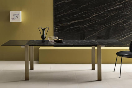 New finishes for the top, now available in ceramic+glass in 3 different polished marble effect finishes. Noir Desir, arabesque Calacatta, Orobico grey.