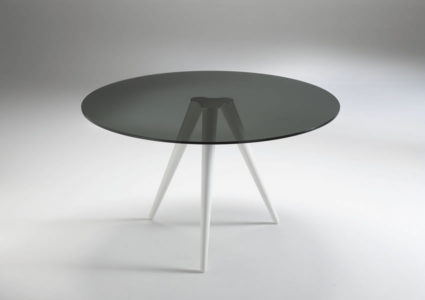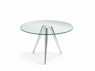 High table solid and elegant at the same time. Available with white lacquered or chromed base, top in transparent, smoked or extraclear glass.