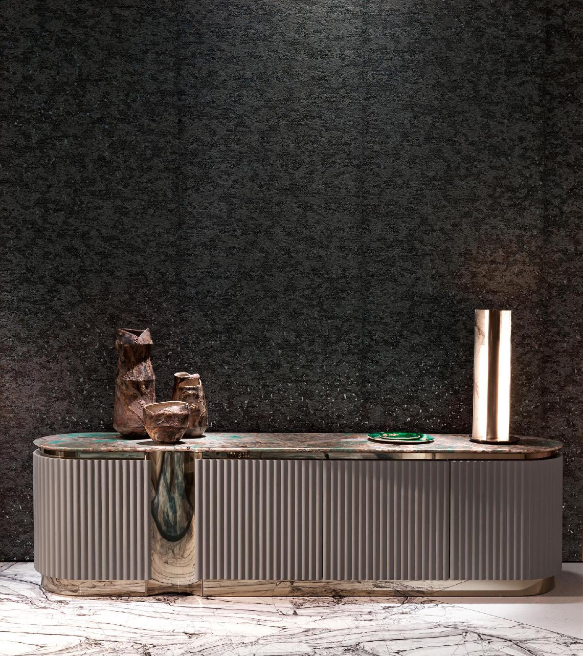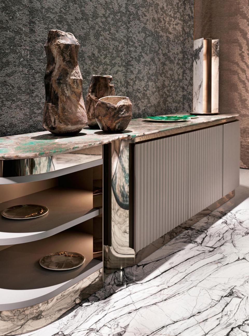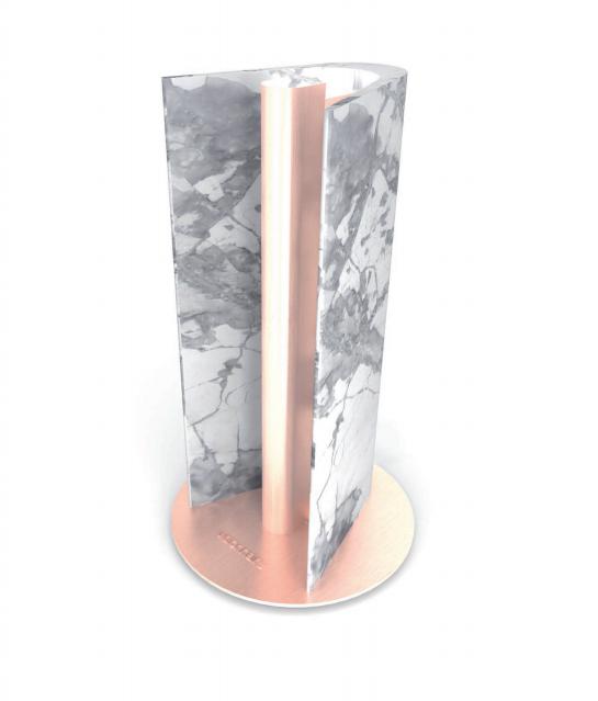 Table lamp and wall lamp carved from solid marble, light diffuser in stainless steel with LED diffuse lights.