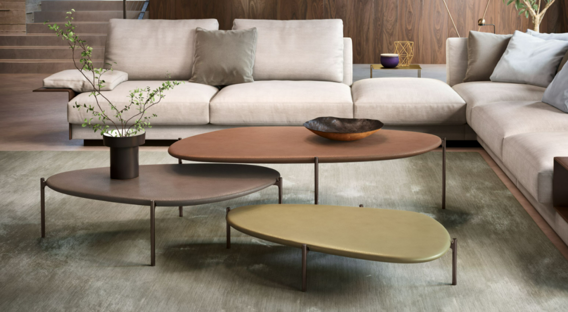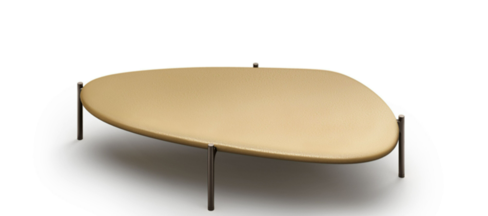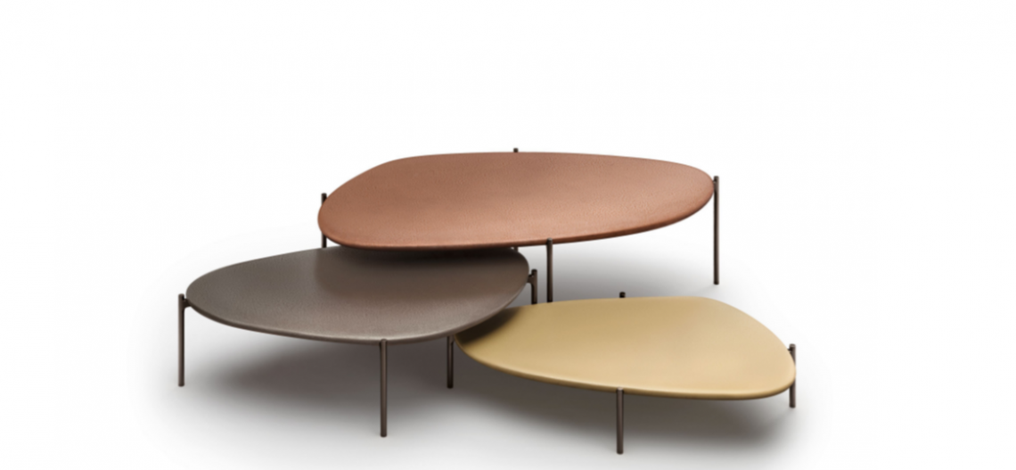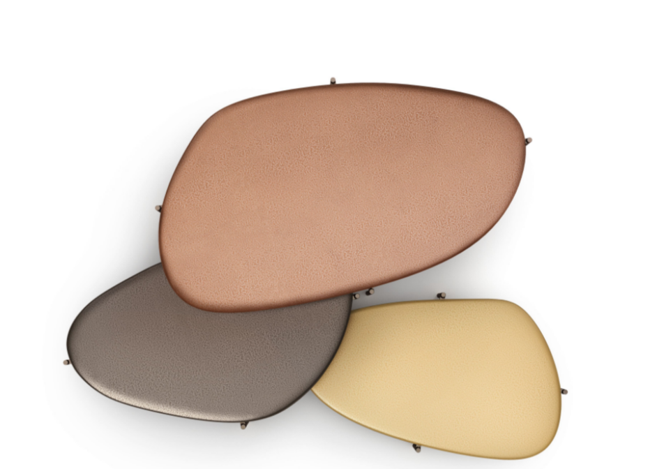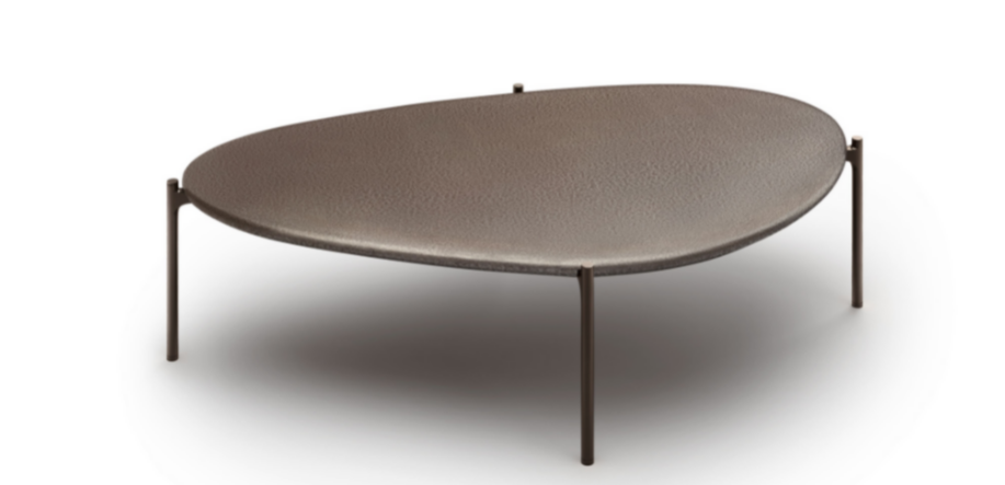 The tabletop of the Ishino Side Table is cast from lightweight concrete, the surface selectable in three different metallized finishes: Whether in copper, brass or bronze, the finely crafted ovals give the table its special charm. Each piece is unique.