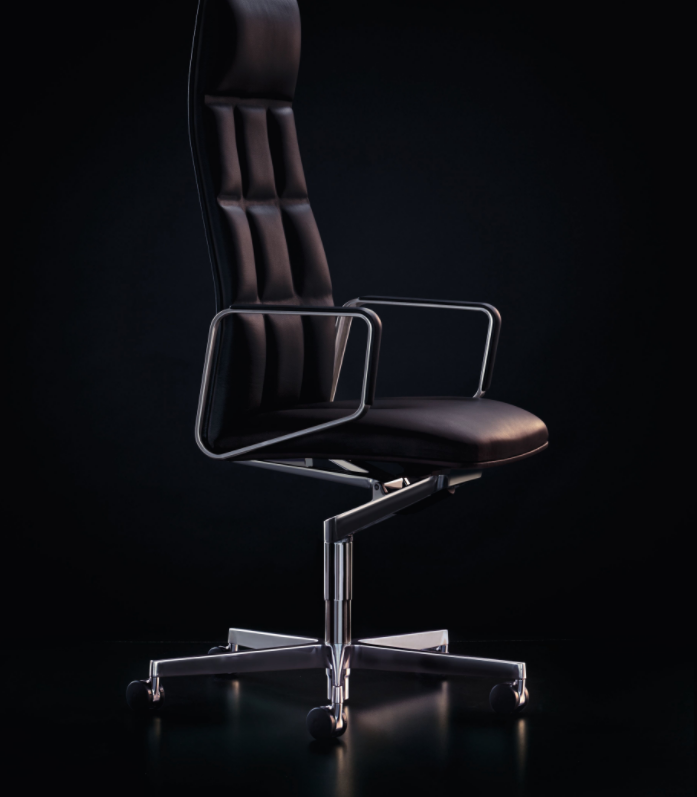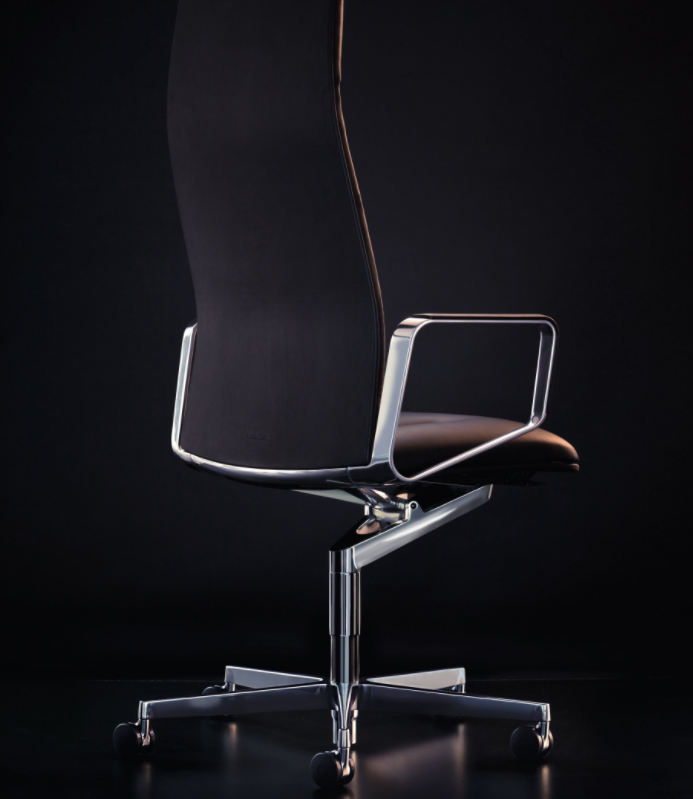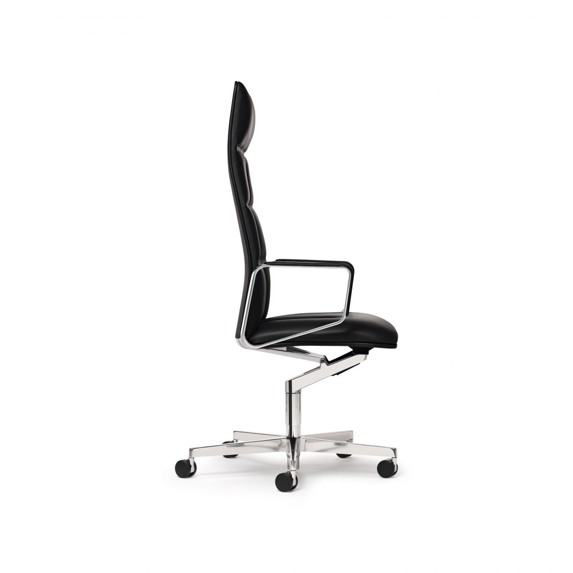 For the ergonomic comfort of modern leadership culture: every aspect and every line precisely coordinated. Soft leather modulates the elegant upholstery, and the star base, swivel column, seat and back fork, and the armrests appear is if they are one. Whether as an executive chair, a conference chair, or a visitor chair.