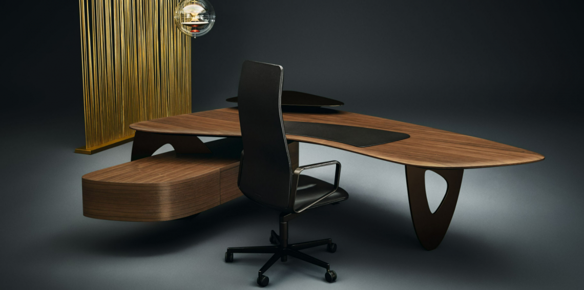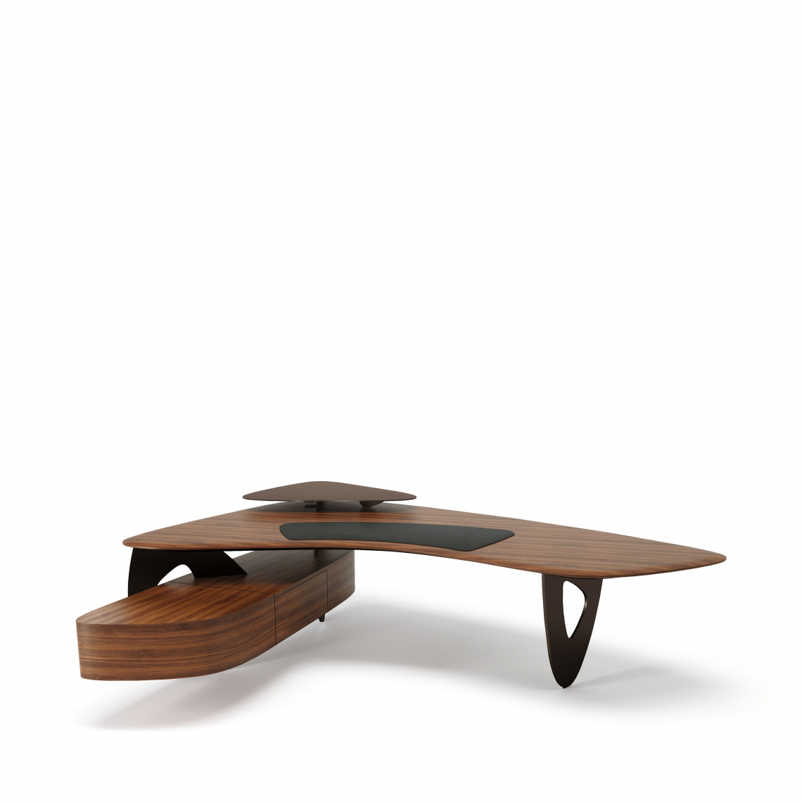 Master craftsmanship: the high-quality wood veneer has been drawn over table top and curves with an innovative vacuum process. The result: an exceptional surface and body. Tama Desk creates space for thinking and decision making, and integrates useful features for confidential work.