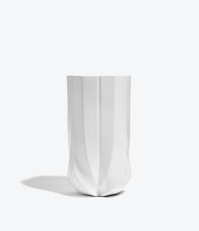 BRAID Vase - in porcelain with a gloss finish - a complex geometry defined by a distinct base that weaves in an upward motion.
