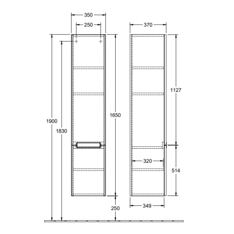 Modern, angular bathroom furniture with sophisticated integrated handles