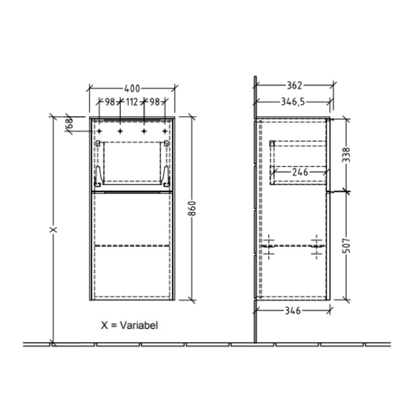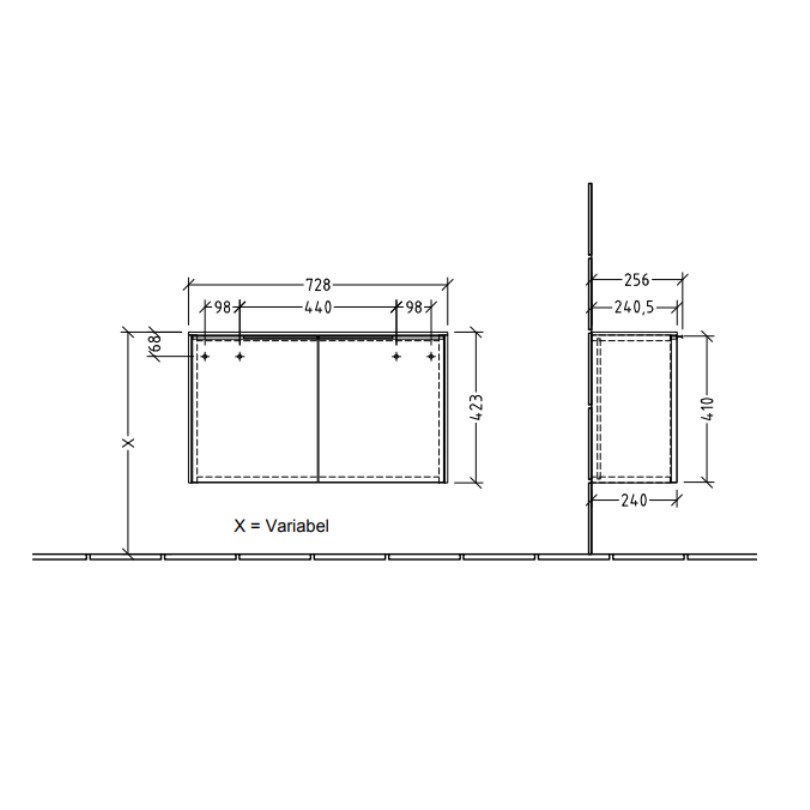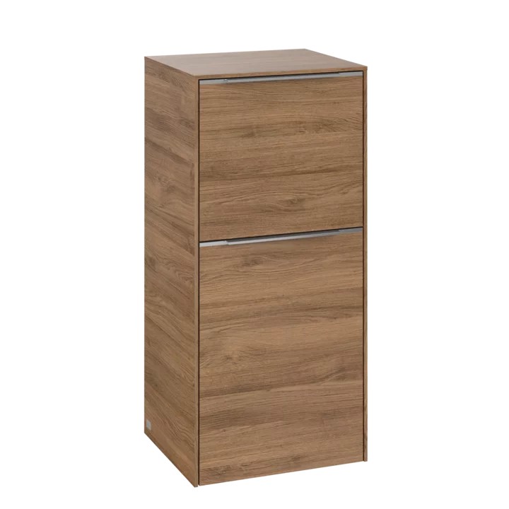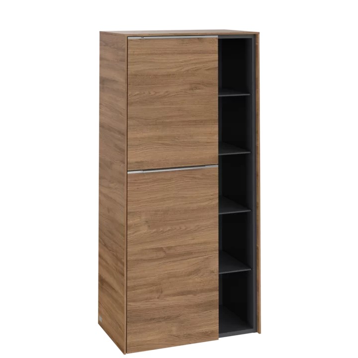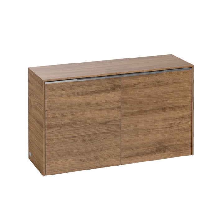 Modern, angular bathroom furniture with a subtle aluminium handle