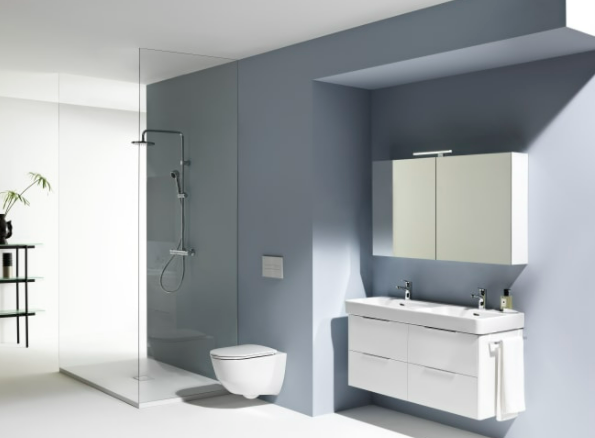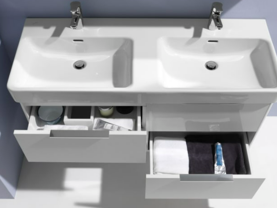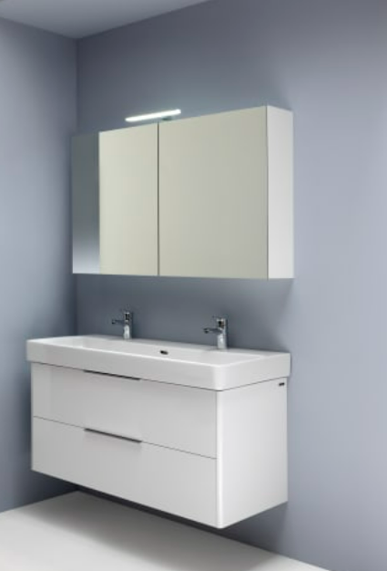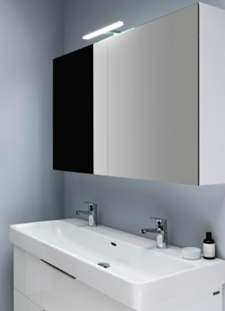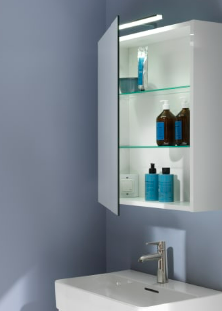 Shelf with mirrored front, open-sided right and left, 2 shelves
