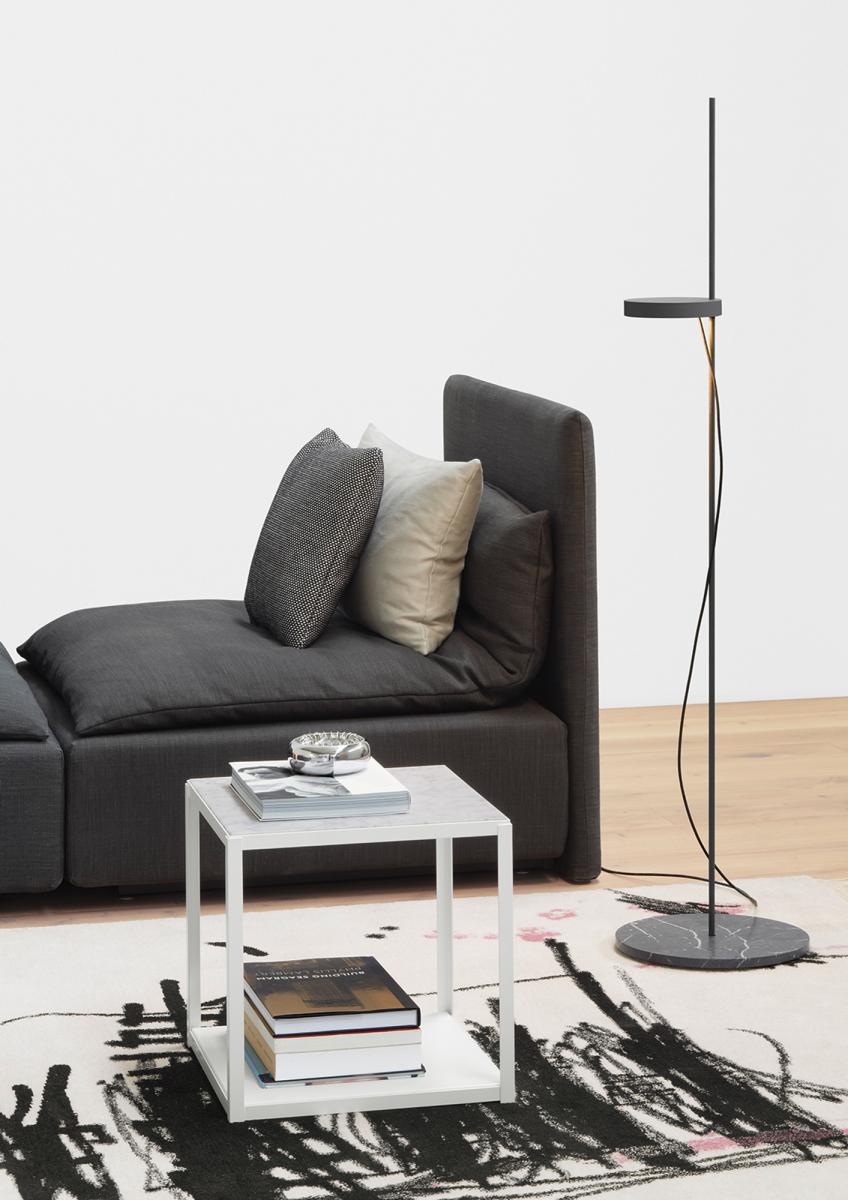 The table light PALO elegantly offers smart solutions for table or bed side reading. The visible cord lends a casual and dynamic edge to the precise form of the light. The solid oiled marble base in Bianco Carrara or Nero Marquina luxuriously enhances the purity of the defined forms of this light.