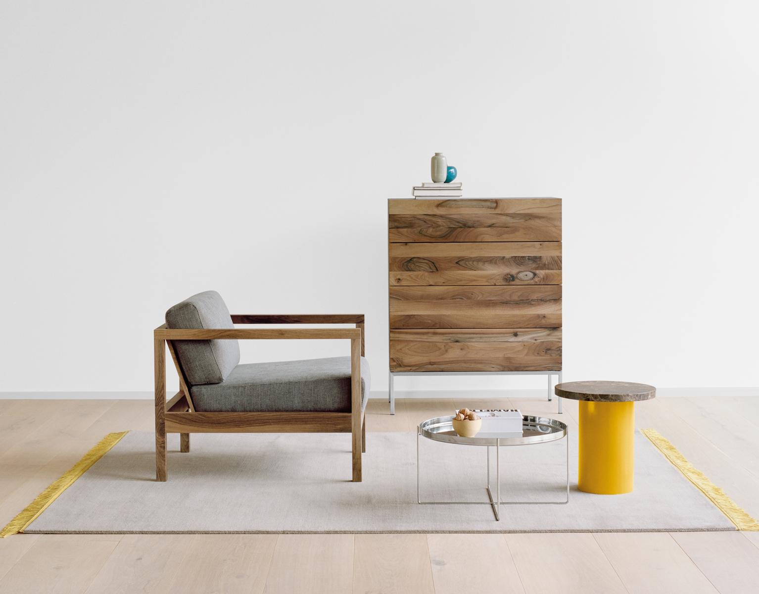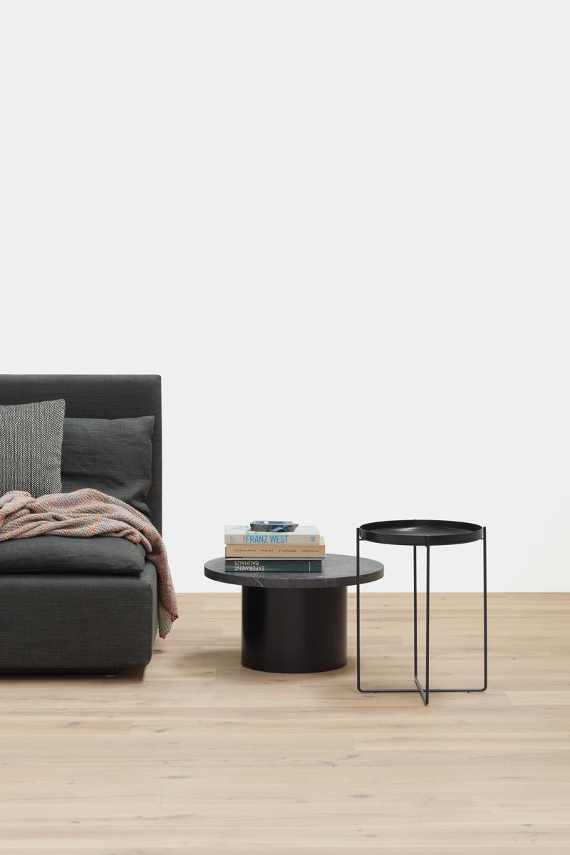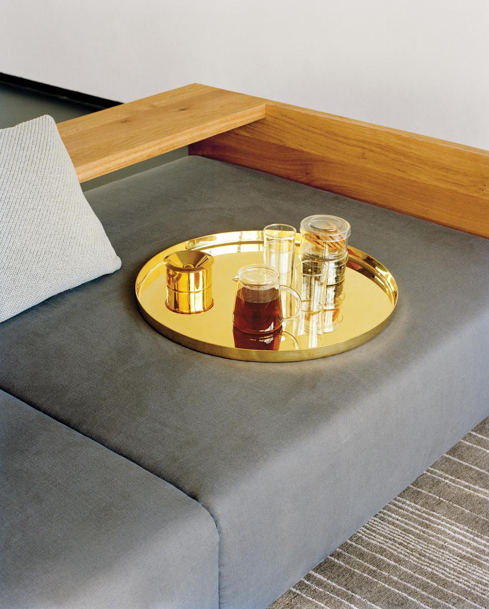 Reminiscent of ornately detailed oriental tea services, HABIBI as a tray is a precious piece offering elegant possibilities for combination. The tray HABIBI in combination with the base made from solid material can be used as an independent side table with generous diameters and optional heights available in polished brass, copper and stainless steel. Untreated by chemicals, natural oxidation processes create a beautiful patina over time, unless interrupted by applying conventional metal polishes. The surfaces are not lacquered. The endearing tray HABIBI is additionally available in powder-coated aluminium in jet black.