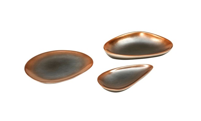 Vassoio in ceramica finitura anticata (argento, ottone o rame).