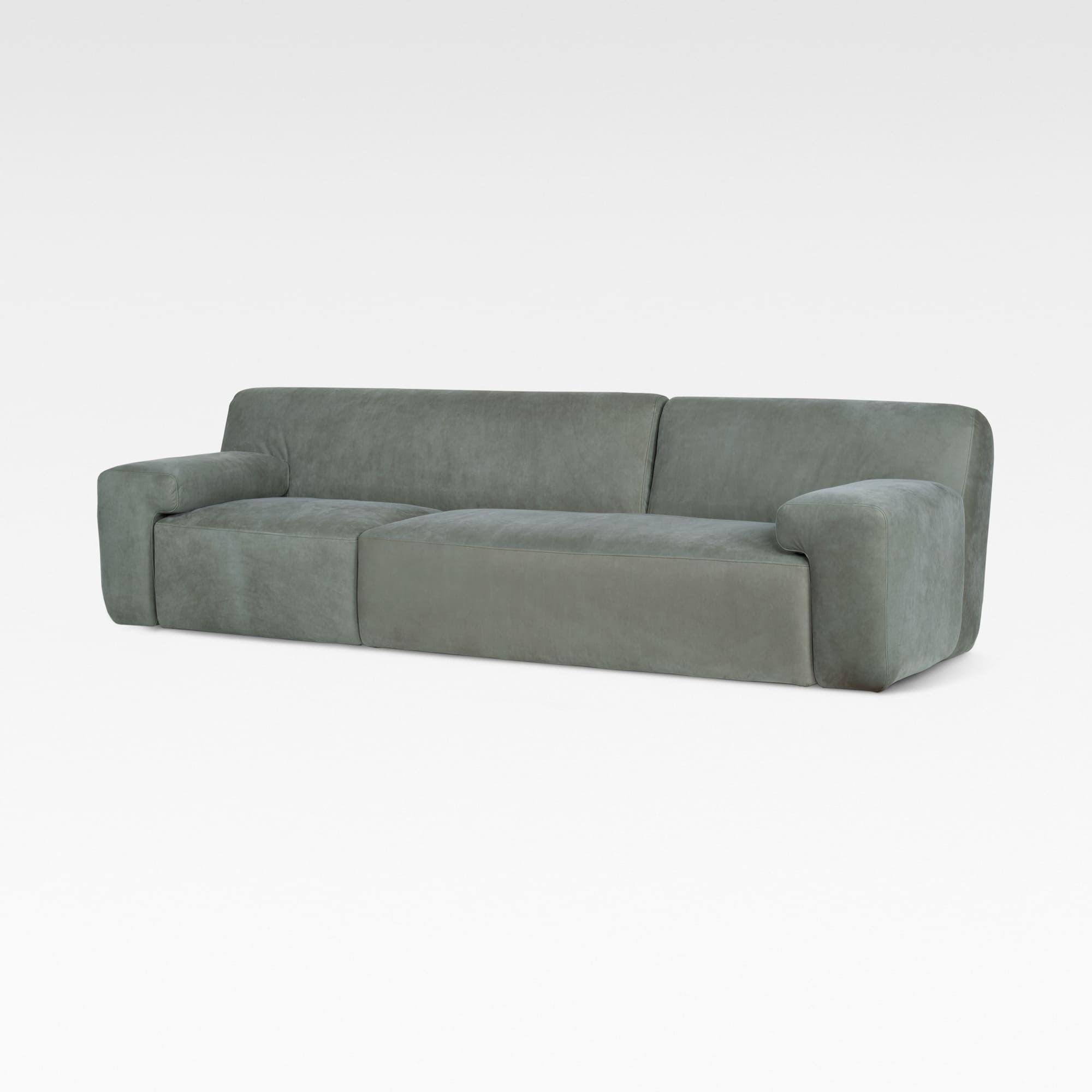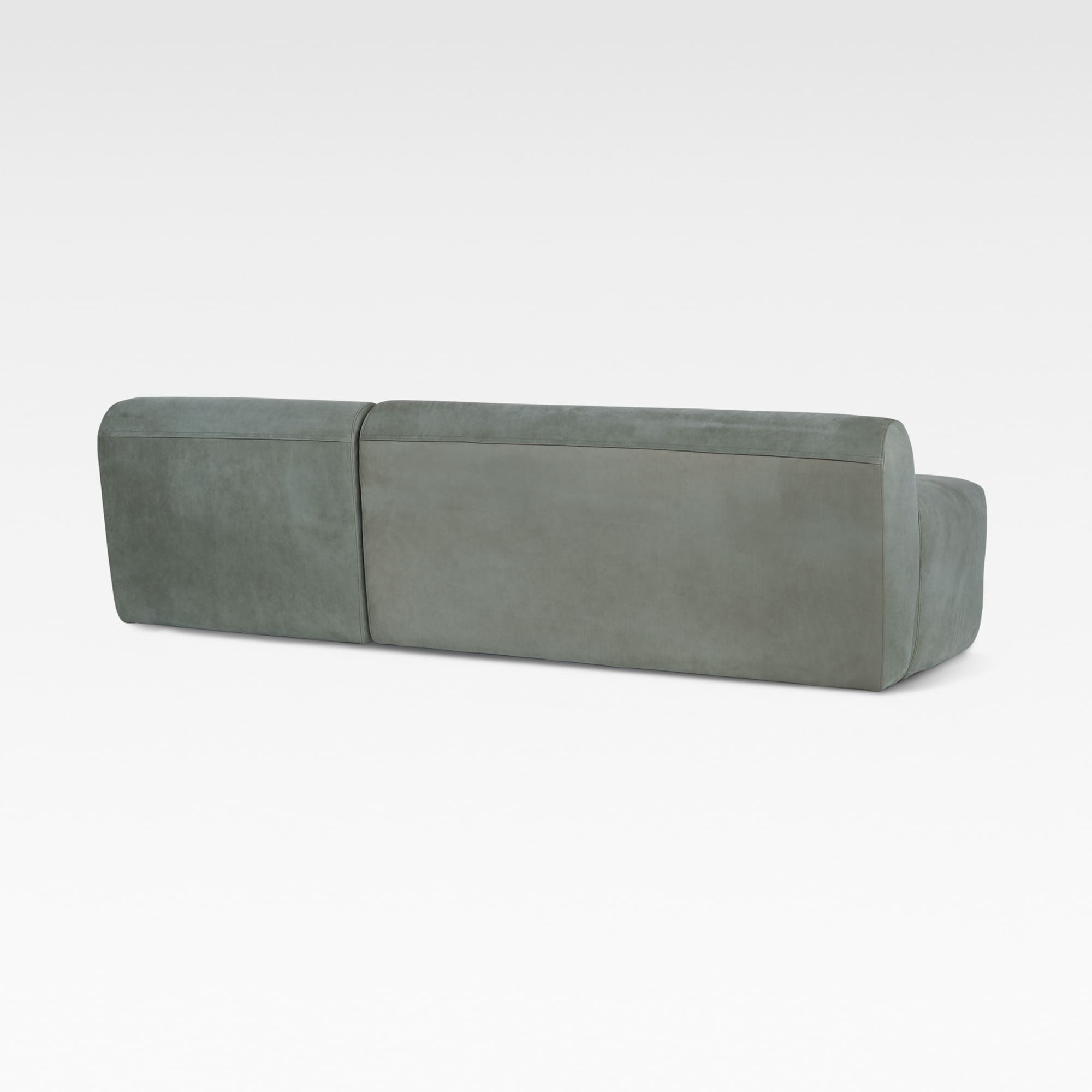 The Almourol leather sofa draws inspiration from the distinctive contours of Almourol Castle, reflecting its irregular yet captivating silhouette. The asymmetrical design brings a unique allure to any room, while maintaining a harmonious aesthetic and contemporary elegance. Upholstered in premium Italian leather, the Almourol leather sofa reveals meticulous craftsmanship, with every stitch highlighting its refined artistry.