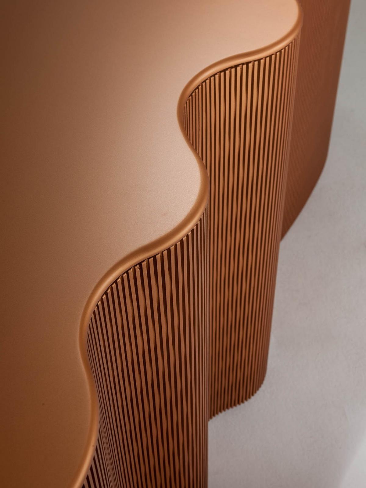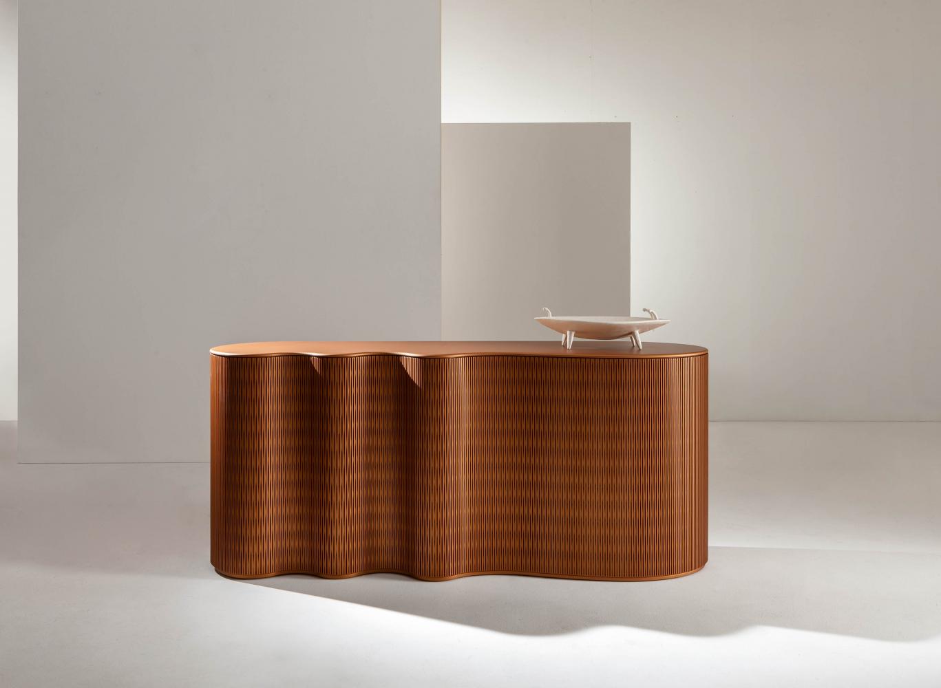 Part of the Infinity collection, this console revisits the unique detail of the geometric alveolar base, enhancing it thanks to a series of soft curves.