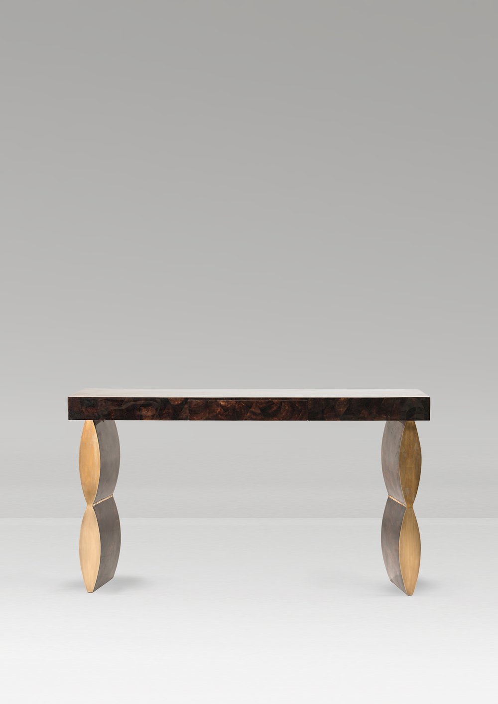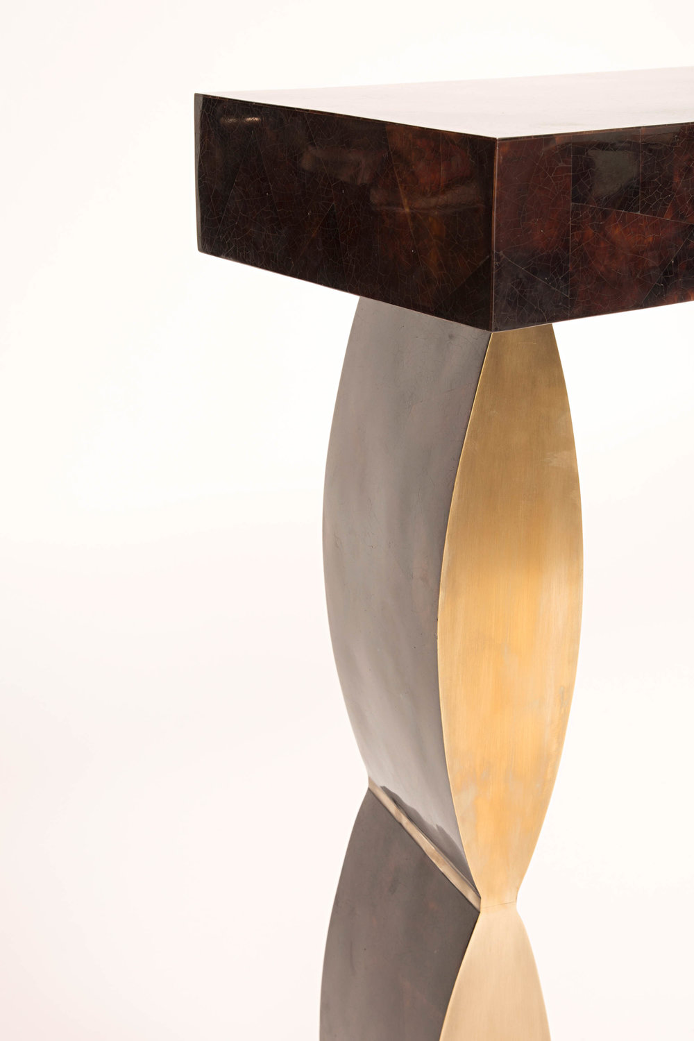 The Propeller Console makes for a dramatic statement piece in any space. Available in Brown or Black Pen Shell.