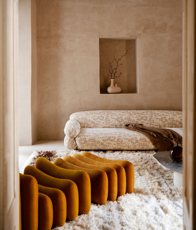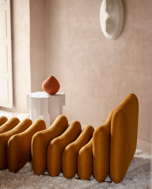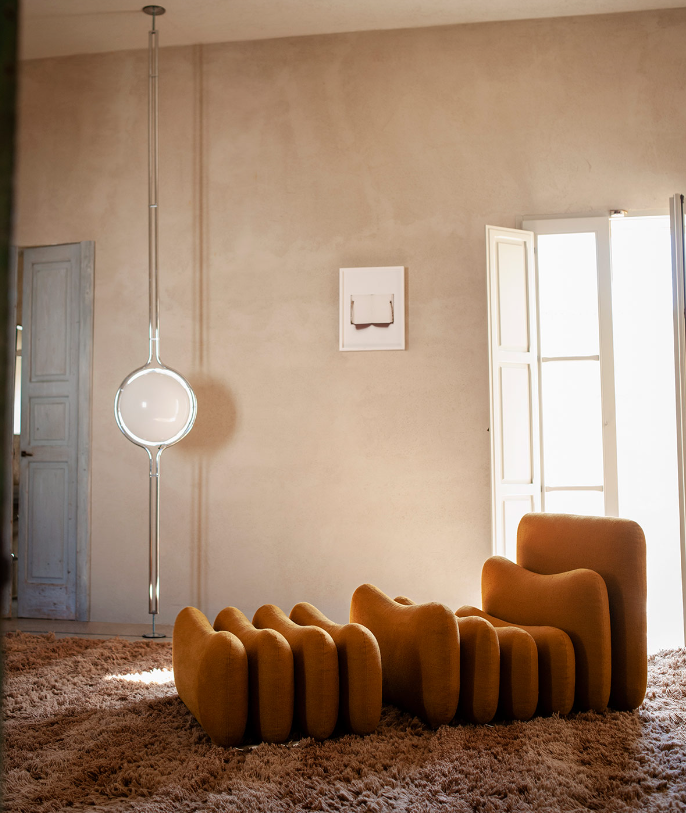 Modules with unusual shapes give life to original seating configurations where aggregation and variability take center stage. Additional System is a project by Joe Colombo from 1967, reimagined today by Tacchini while respecting its original spirit: a modular system with timeless allure, still “futuristic” even 50 years later. Cushions of six different sizes, inspired by ergonomic studies of the 1960s, come together in dynamic and flexible combinations created by varying the number of elements and how they are positioned. Additional System is available in armchair, pouf, and daybed versions.