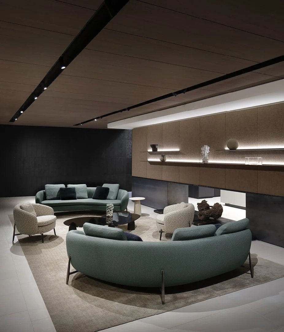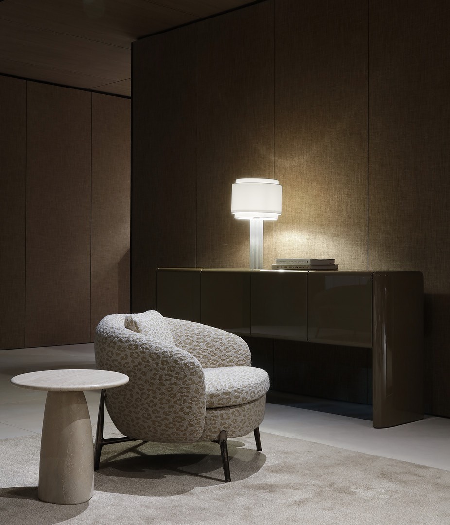 Orbis系列為Poliform家具世界增添了更加親密的空間維度。 扶手椅憑借彎曲包覆的靠背,于客廳中營造出一方專享領(lǐng)地,適于交流、放松及享受生活之趣。座椅的寬敞形態(tài)與精細(xì)的金屬支腳形成微妙平衡,展現(xiàn)了卓越的工藝水準(zhǔn)與裝飾面處理藝術(shù)。