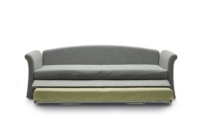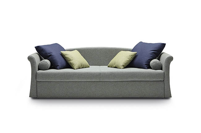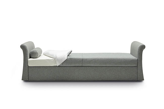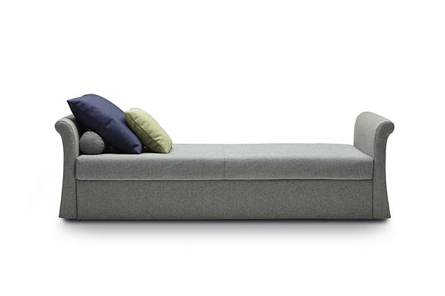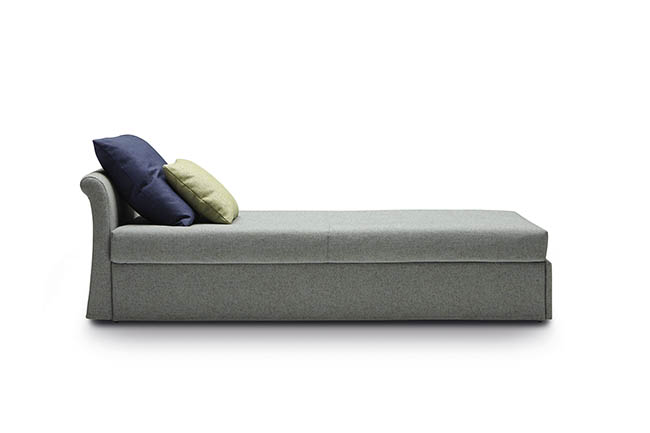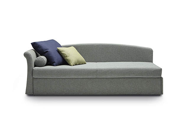 Jack is a practical and versatile sofabeds program, including models with calm or romantic designs adapting to any furnishing need. Jack is offered in multiple versions: sofa, chaise, bed with slatted base, with headboard, with footboard, full, double or with drawers and can therefore suit many environments such as a colorful child’s bed, a comfortable den or simply to be used as a family room that offers a comfortable guest bed when needed. Jack may be adorned with a large variety of cushions types according to your own taste and with a second bedspread for the pullout bed.