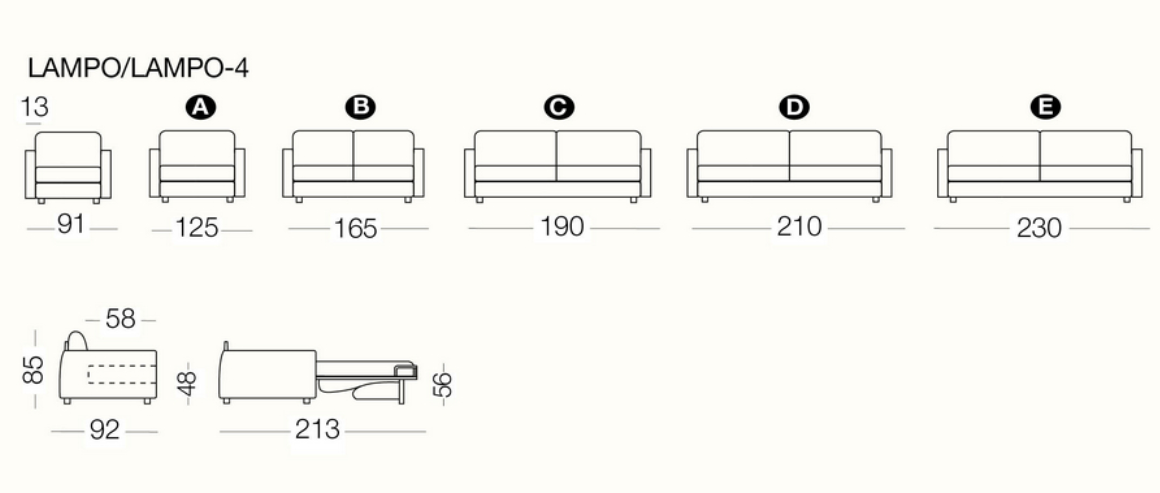 Lampo is a sofa whose stylish bring sophistication to a modern setting. The cover is completely removable and washable according to the fabric chosen. By simply rotating the back, without removing any of the cushions, Lampo converts into a conventional bed with a 200 cm. mattress.