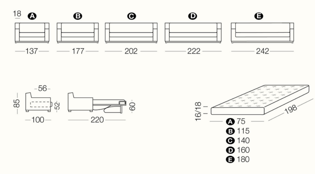 Larry is a sofa whose stylish bring sophistication to a modern setting. The cover is completely removable and washable according to the fabric chosen. By simply rotating the back, without removing any of the cushions, it converts into a bed with a 16/18 cm mattress.