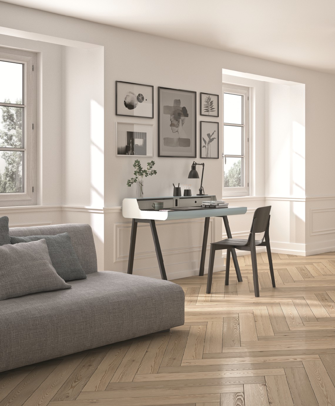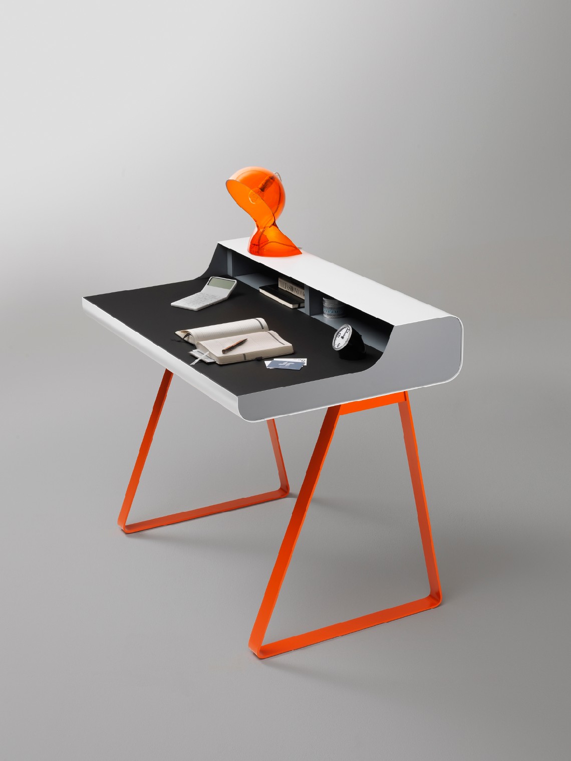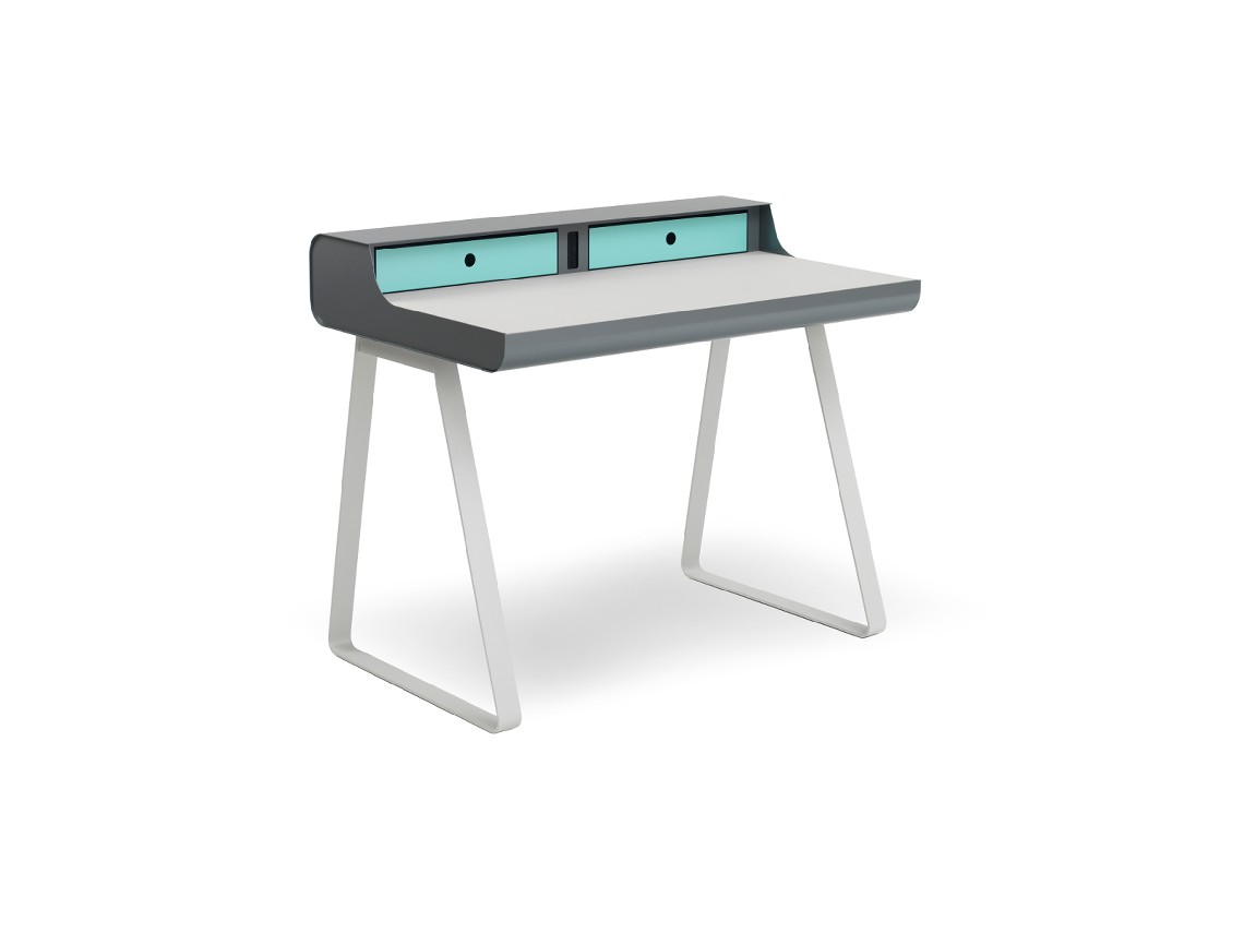 Ein gro?zügiger Assistent mit K?pfchen – der Sekret?r PS 10 überzeugt durch eine ausladende Arbeitsfl?che und pr?zise ausgearbeitete Details: zwei versenkte Aufbewahrungsf?cher mit Klappen für Kabel und Steckerleisten, der Mittelsteg mit Bürste zur Kabelführung und eine ger?umige Schublade mit Stiftablage. Optional sind zwei Schubk?sten erh?ltlich.