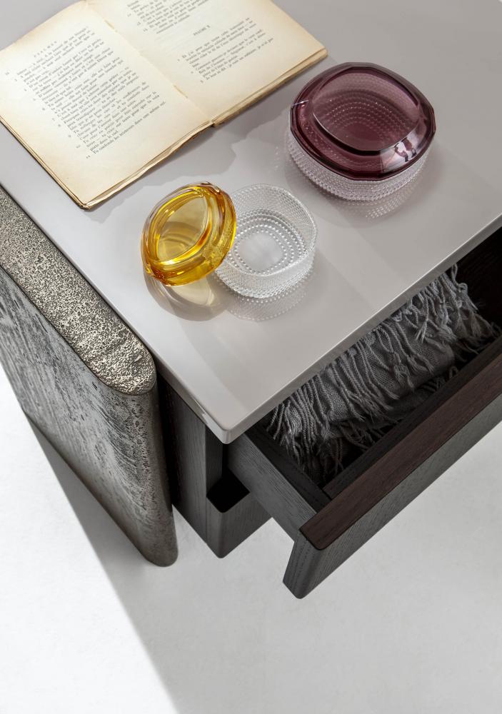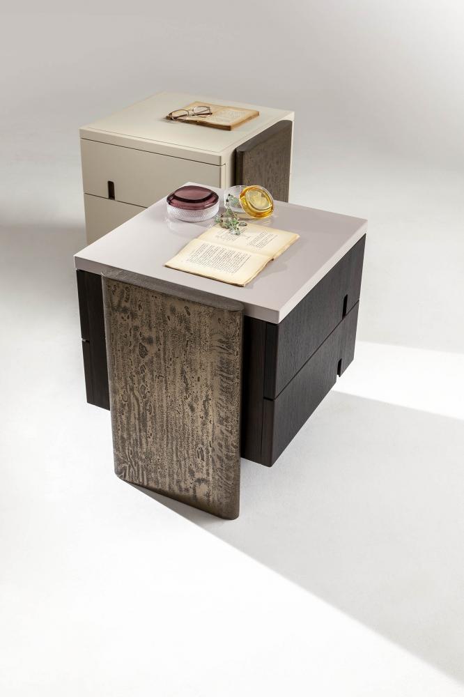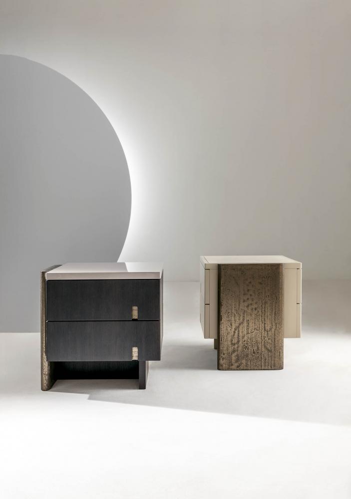 Part of the innovative Outfit collection, these modern bedside tables are craftsmanship masterpieces. Cesare Arosio's night tables are conceived in combination with the Vanity Outfit console to create a complete, unique and different interior design.