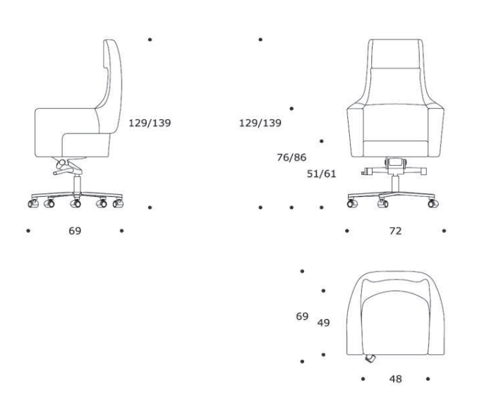 Dimensioni: larghezza 72 cm, altezza 129/139 cm, profondità 69 cm