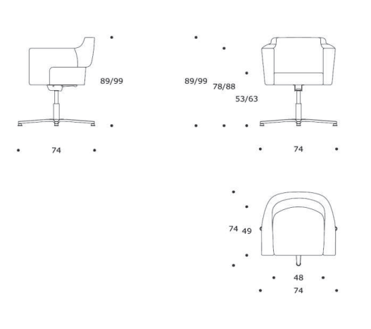 Dimensioni: larghezza 74 cm, altezza 89/99 cm, profondità 74 cm